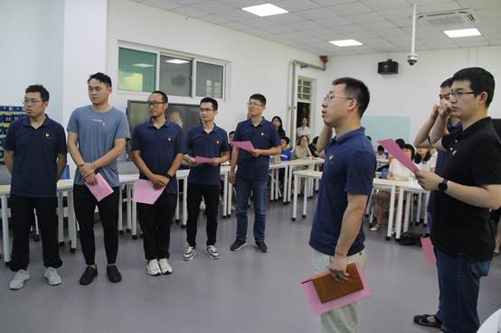 活动第三项,重温入党誓词。全体党员起立,面向鲜红的党旗,高举右拳,庄严宣誓。