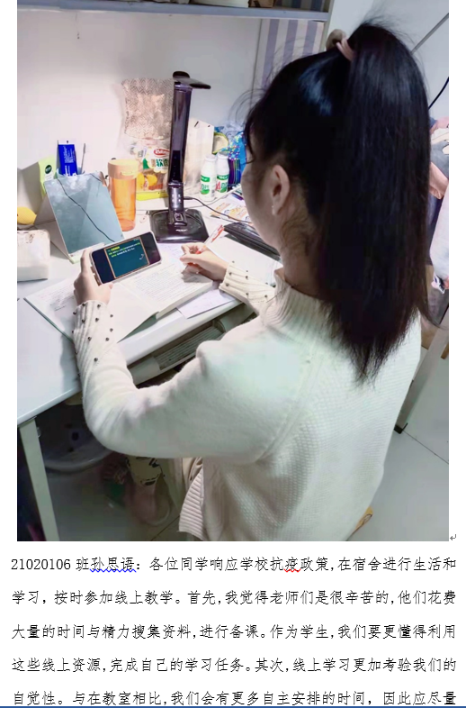 各位教师积极应对疫情形势下的教学工作,对在线教学授课形式和教学资源平台开展研讨和交流,全体教师尽快熟练掌握信息化教学工具的使用流程和环节,及时在各教学平台中进行课程建设,以学生为中心,认真落实课程改革的要求,更新教学理念,创新教学方式、教学方法、教学设计,注重课程思政融入。做好课前、课中、课后各环节教学任务和教学资源的准备和发送,并按照学校要求做好课程链接等信息的发布,在开课前不断提醒学生上课安排及应该完成的教学任务,保障课堂正常运行。课堂授课中,各位教师展现良好的精神面貌、深入浅出,注重启发引导,引导同学积极参与,注重与学生的交流互动,达到了良好的课堂效果。