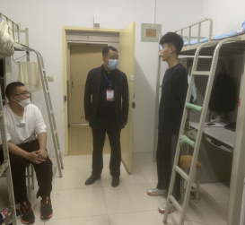 领导详细询问了新生的上课情况和日常生活情况。“上课设备是否正常?入校这几天是否适应?食堂饭菜是否可口?还有什么困难需要老师帮忙解决?……”细心叮嘱同学们养成良好的学习和生活习惯,尽快适应大学生活,有困难及时向辅导员反映。同时希望同学们理解并自觉遵守学校疫情防控管理规定,树立大局意识和全局意识,及时进行核酸检测,出门戴好口罩,做好个人防护。