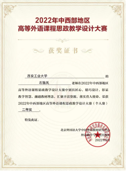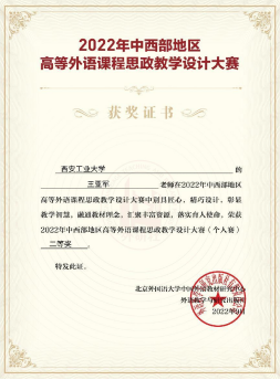 公共外语系石雏凤老师在大赛中荣获二等奖