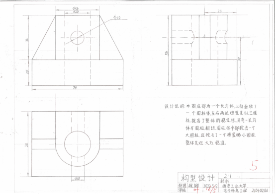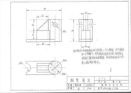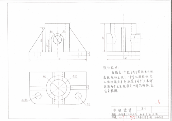 构型设计即构思形体设计,即根据设计要求设计出满足要求的形体。由于给定的只是设计要求,没有具体的形体,故留给学生很大的设计空间。