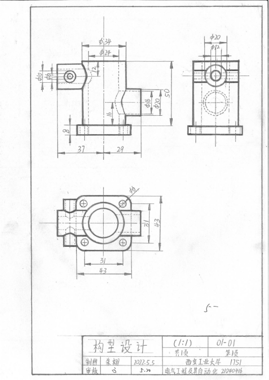 成立之后,《工程图学基础》课程教学改革而增设的教学内容,目的是通过构型设计的练习,培养学生的形体设计能力和创新能力。