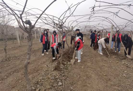 大学生志愿者赴临潼区铁炉万亩猕猴桃基地开展以“雷锋精神永传承 志愿服务助春耕”为主题的志愿服务活动。