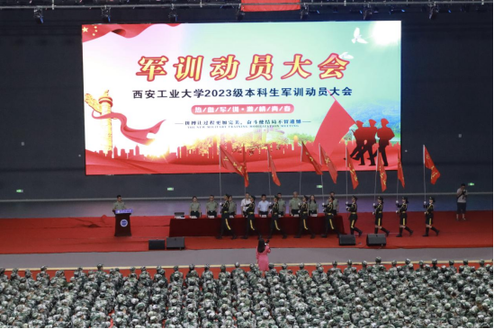 2023年9月1日9时,在大学生活动中心召开了2023级本科生军训动员大会。校党委副书记马福、军训旅副旅长易亮分别宣读了军训旅机关干部和营、连干部任职名单,军训旅领导为各营、各连队举行了授旗仪式。副校长刘发林作了军训动员讲话,他指出,军训是高等教育的必修课,要充分认识军训的重要意义,希望同学们发扬艰苦奋斗的优良传统和不怕吃苦的精神,严格遵守军训要求,刻苦实施训练计划。大会由军训旅政委翟超主持,军训旅机关全体参训干部、教官和学生共4500余人参加了大会。