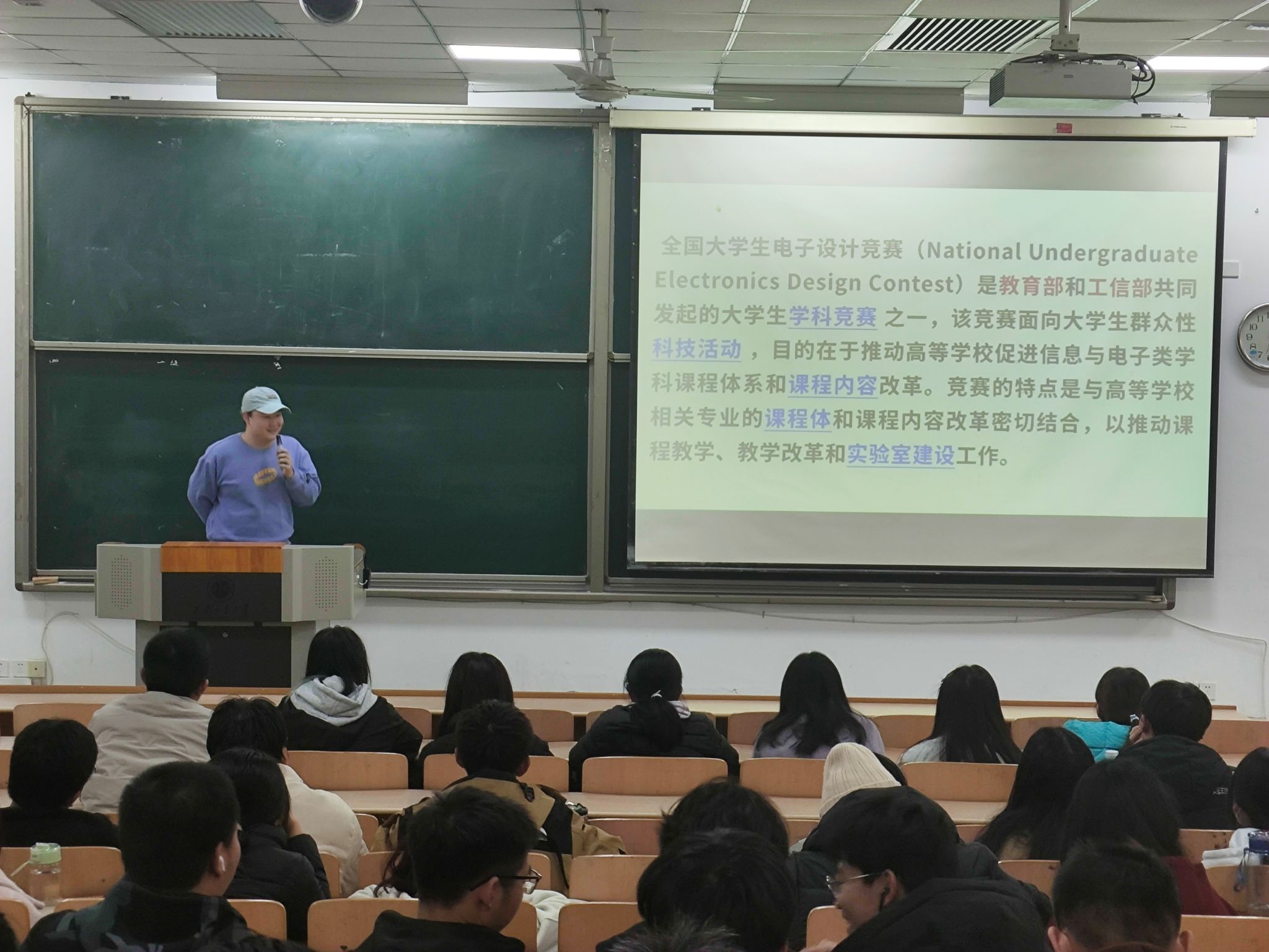通信工程专业李晓艳老师、大学生电子设计大赛负责人杨建华老师以及各类竞赛获奖学生作为嘉宾给新生一起分享参与大学生学科竞赛的心得体会。