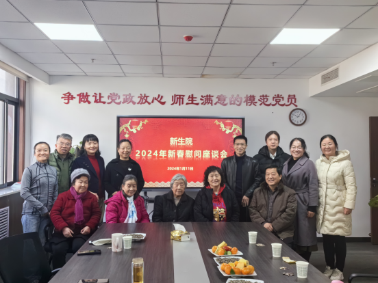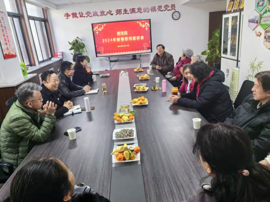 退休教师、党员代表及教师代表欢聚一堂,共迎新春。
