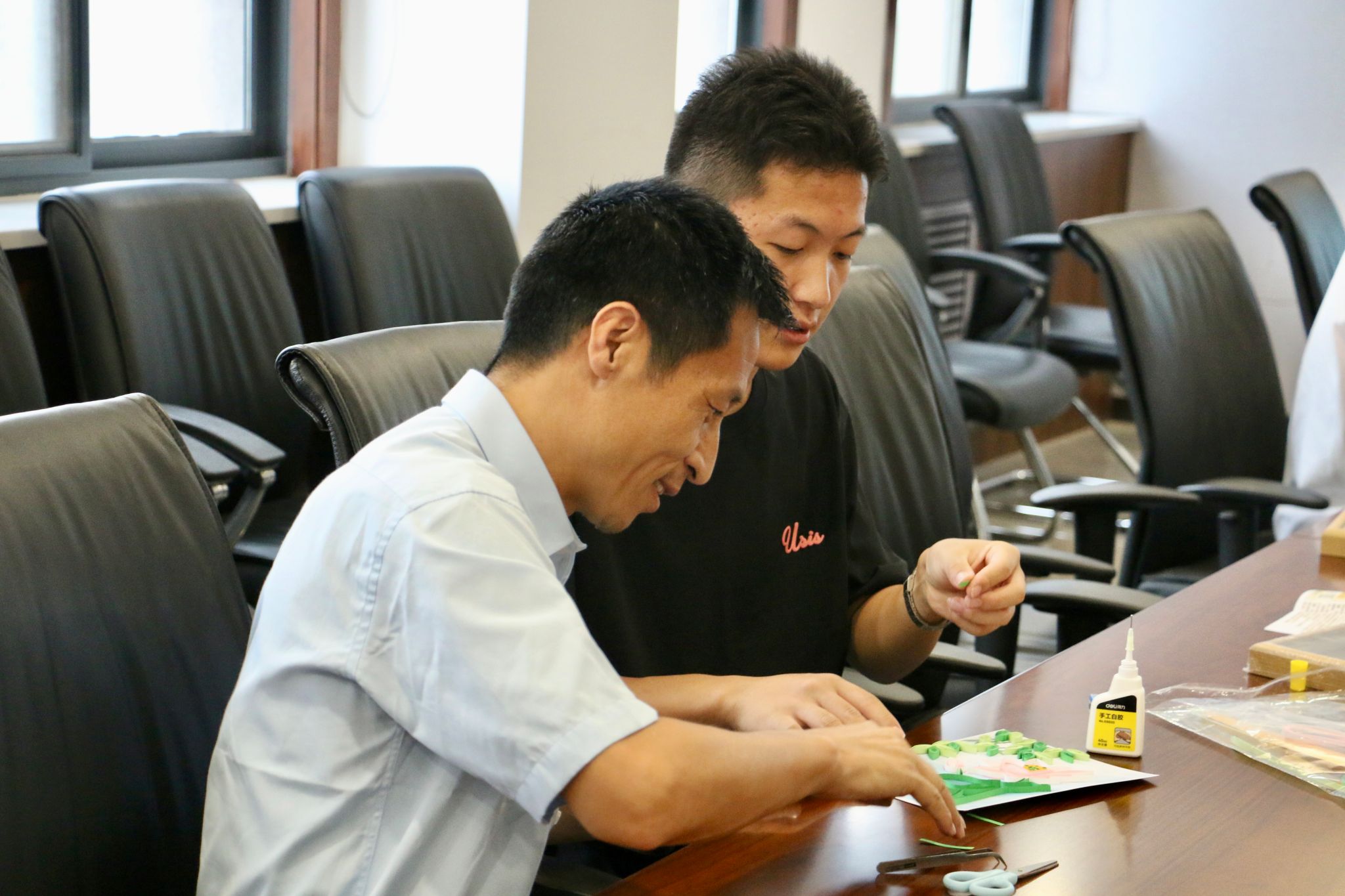 通过学习基础的卷纸方式和技巧,现场师生分组合作,将细长的七色彩纸用卷曲、捏压、拼贴等方式组合成形,构成一幅幅精巧的图案。每幅精心构思的青莲作品经过精雕细琢,生动地展现在众人眼前,参与者不仅沉浸在高雅的艺术氛围里,也从这些作品中受到了直观生动的廉洁教育。