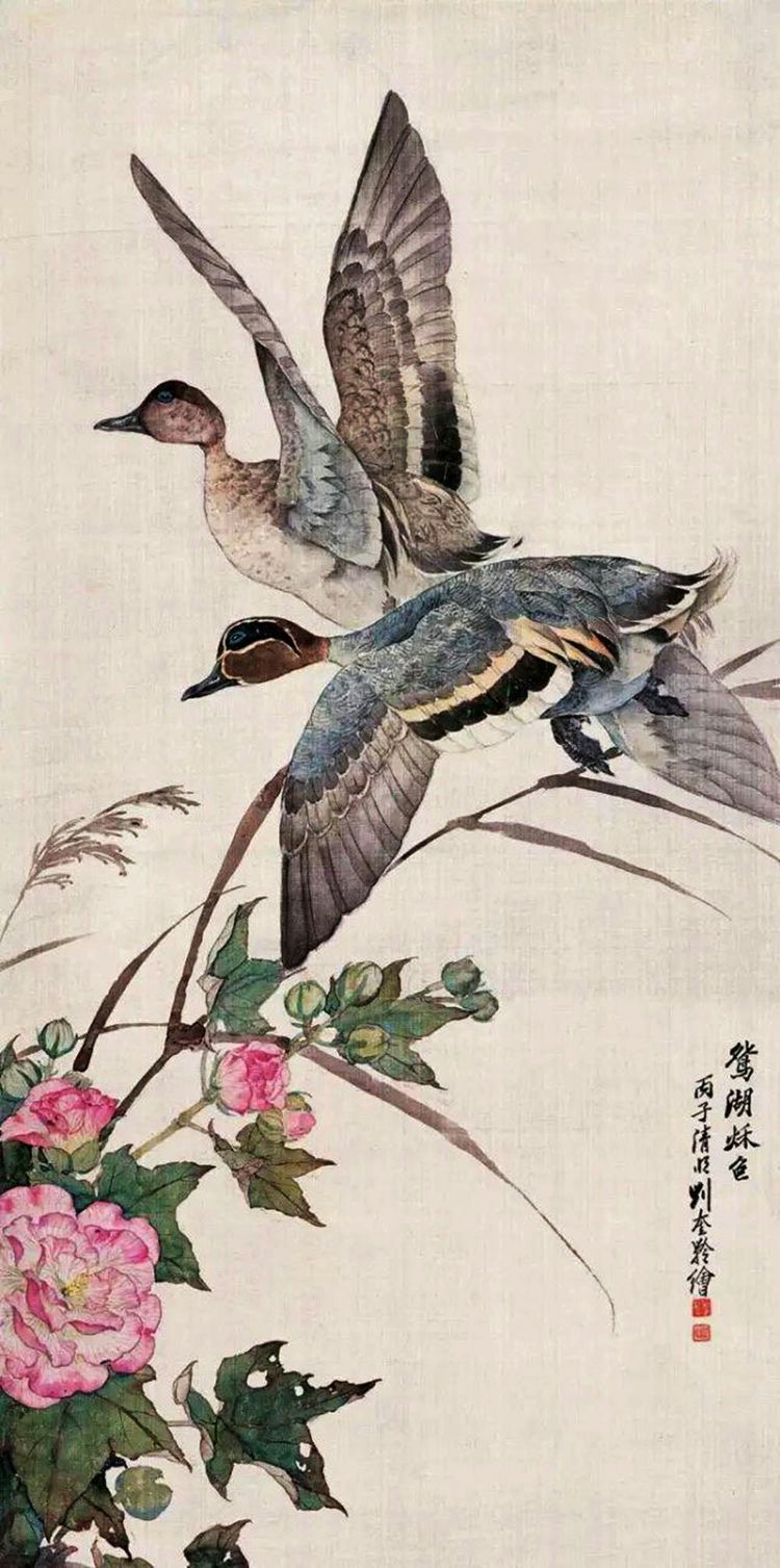 刘奎龄的作品题材广泛,无论是翎毛花卉、水族鳞介、草虫蔬果,还是走兽、人物、山水,他都信手拈来,尤以花鸟、草虫、走兽最为见长。他的画风华滋清润,厚劲灵动,意境深邃。