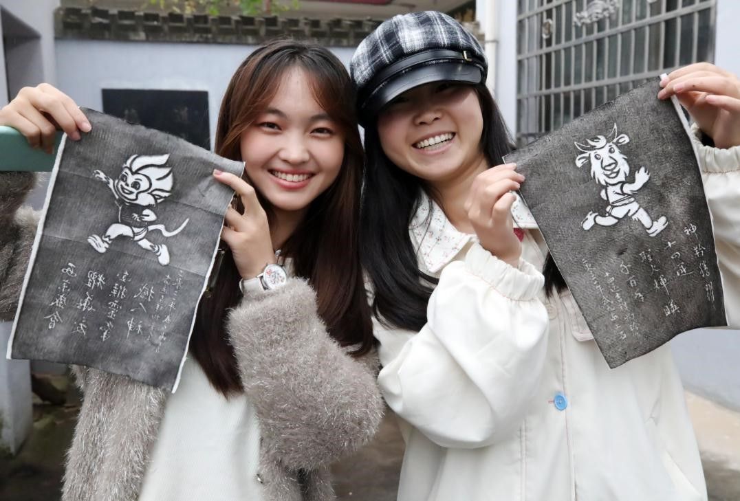 在实践环节,师生们普遍展现了浓厚的兴趣,现场气氛积极热烈,师生们在专业的工匠指导下学习了拓片的基本技法,包括选材、敷墨、拓制等关键步骤。他们小心翼翼地用宣纸覆盖在石刻表面,用拓包轻轻敲打,使墨汁均匀地渗透到纸张中,将石刻上的文字和图案清晰地拓印出来。在一次次的尝试、调整后,师生们都成功制作出了自己满意的拓片作品。