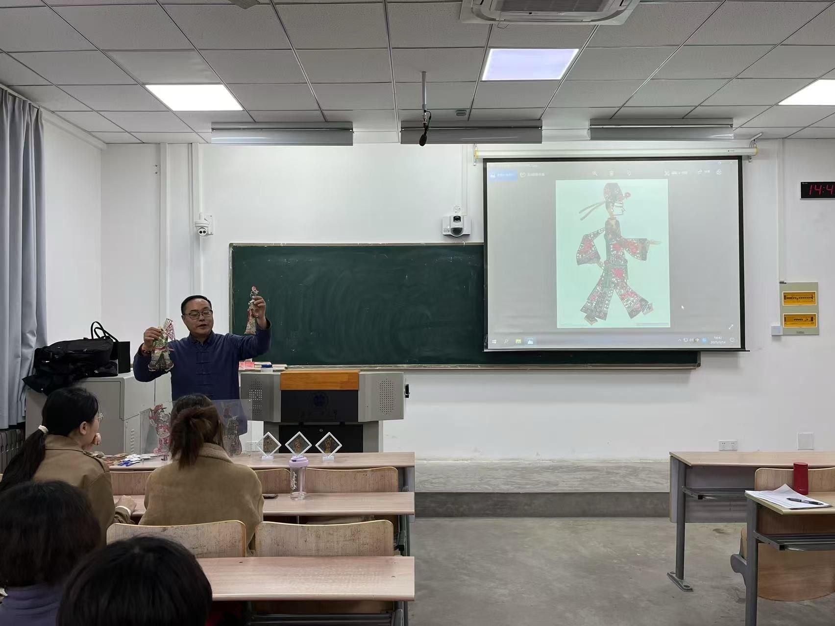 活动伊始,中心特聘非遗传承人为大家带来了一场生动的皮影艺术讲座。传承人通过丰富的图片和珍贵的历史影像,详细讲述了皮影戏从汉代萌芽,历经唐宋发展,到明清鼎盛的千年演变历程,让师生们对这一古老艺术形式有了宏观的认识。