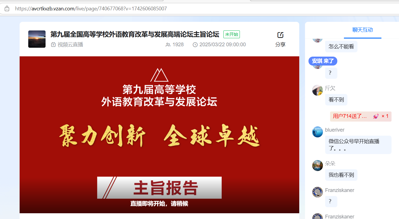 本次论坛包含主旨报告和专题论坛,聚焦提高外语人才自主培养质量、大学英语教材建设探索与实践、人工智能赋能高等外语教育发展和跨学科国际化人才培养等话题。在为期两天的论坛中,公共外语系全体教师认真观看了论坛直播,并特别关注聆听了智能驱动的高校外语教学生态重塑,服务国家战略的大学英语课程建设,数智赋能的“三进”教育模式创新、大学英语服务“四新能力”的再提升等专题报告。