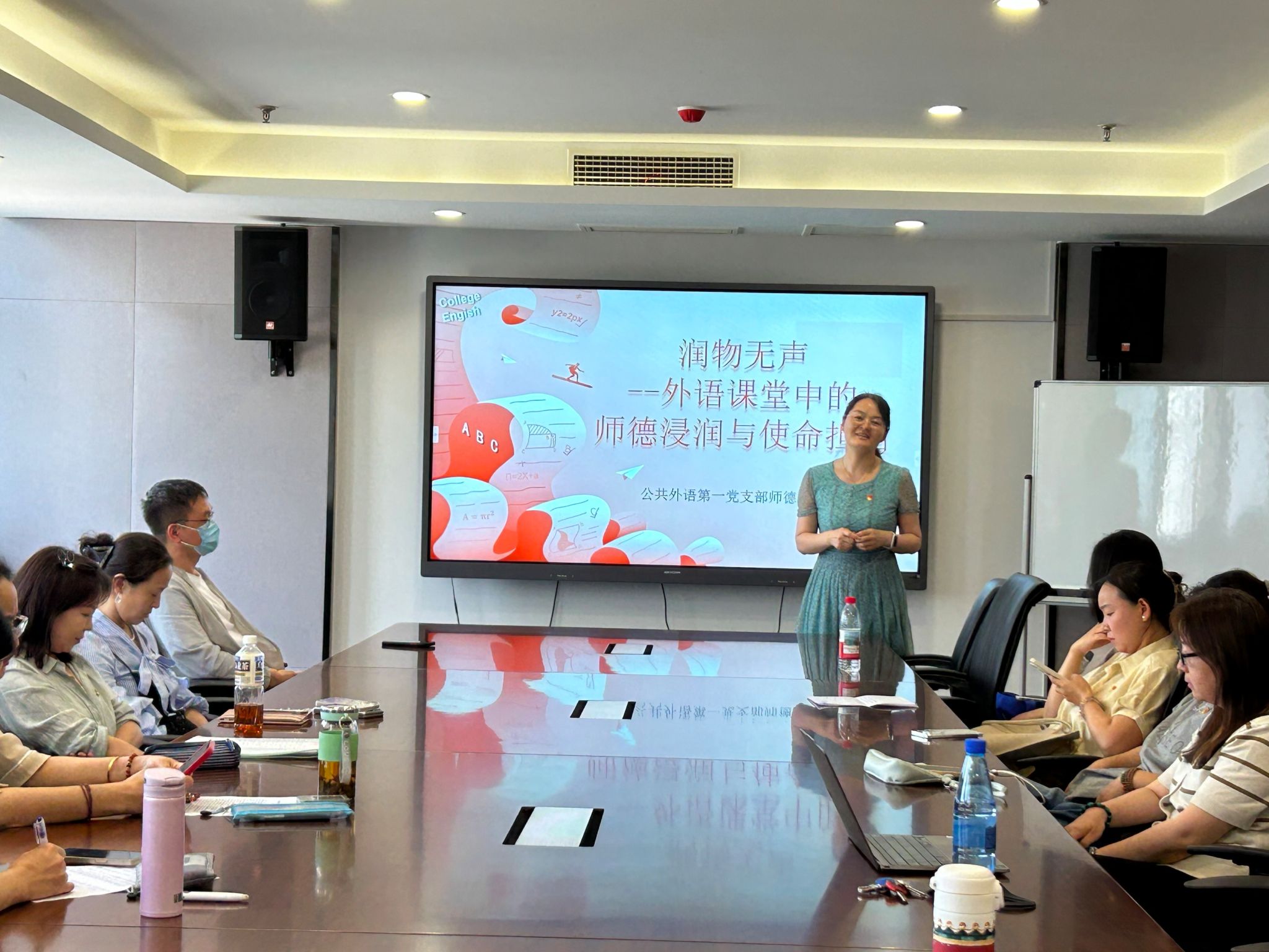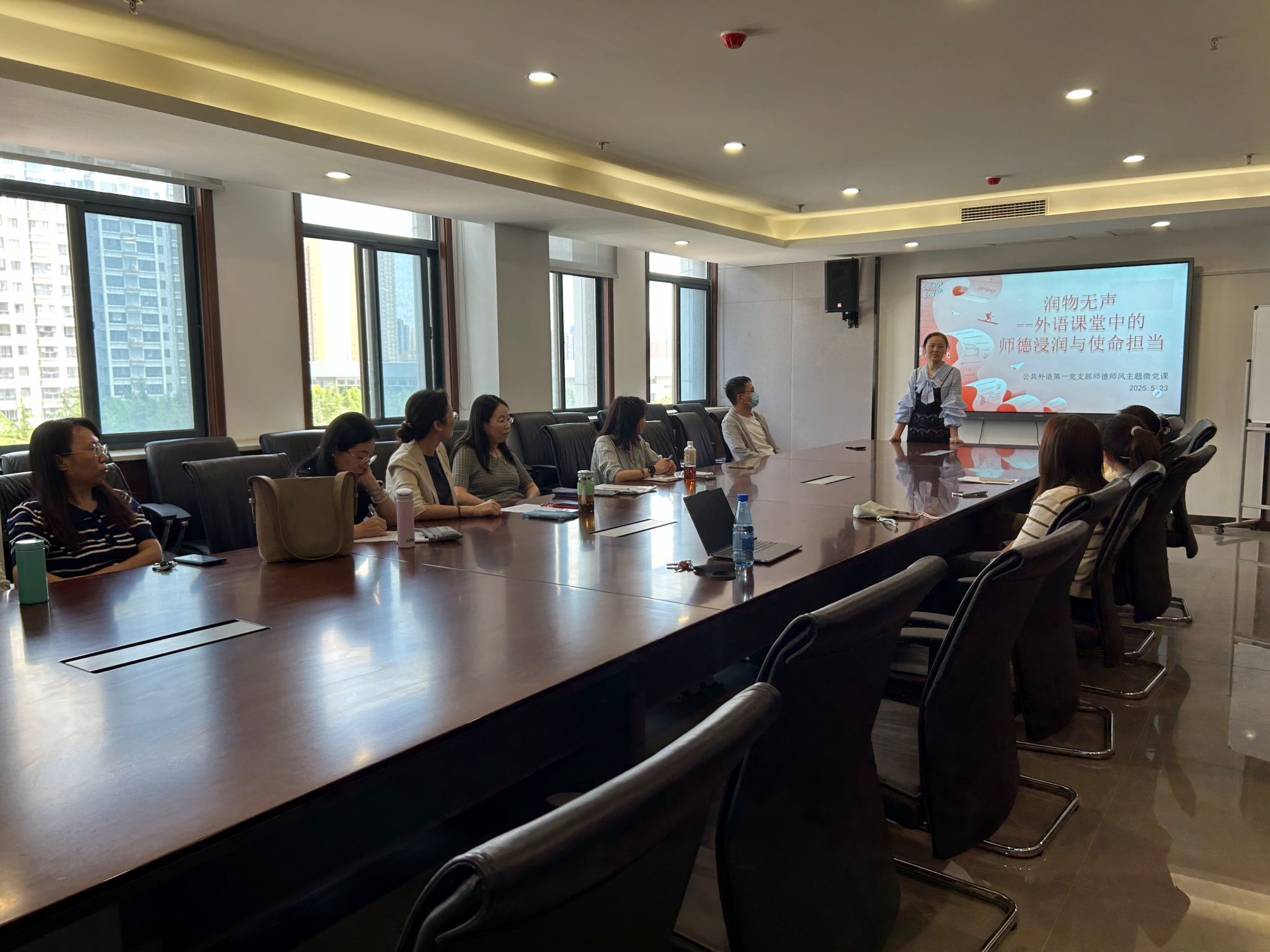 公共外语第一党支部在双创楼524会议室举办“润物无声——外语课堂中的师德浸润与使命担当”主题微党课。支部全体党员参加活动,共同聆听师德故事,感悟育人初心。