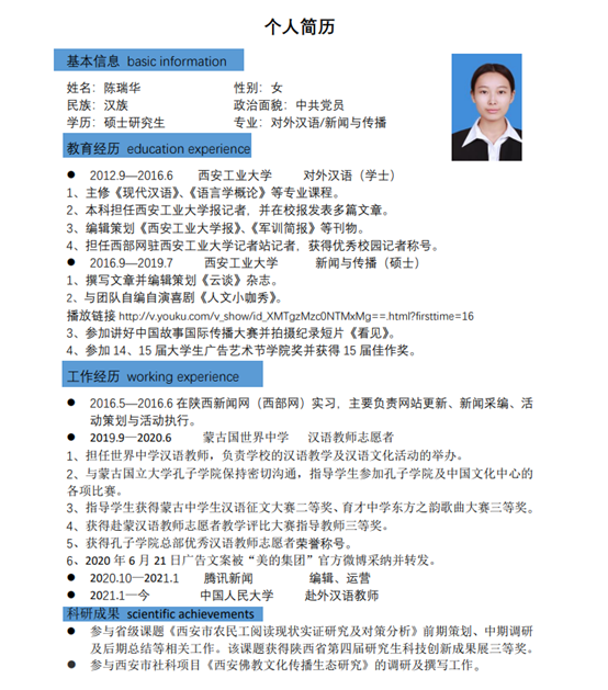 以后,陆续参与了芦老师的各门课程。她很喜欢在课堂上参与讨论并发言,芦老师给了她很大的启发,芦老师说:“心有多大舞台就有多大,一定要有看世界,经历不同风景的愿望。”这些话让她印象深刻,深深影响着她,成为她日后成长道路上的风帆。她毕业后在蒙古国担任汉语教师志愿者,现在陈瑞华已经成为一名优秀的公派教师,任职于中国人民大学海外孔子草莓视频