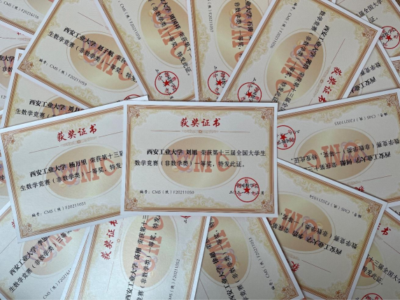 通过数学学科竞赛、创新创业项目等,提升学生实践应用能力。为学生搭建了阶梯型、层进式学科竞赛平台。使学生掌握数学课程的思维方法,并将其应用到其他课程和学科竞赛中,产生持久影响力。近三年来,学校学生参加数学学科竞赛,获奖数量和质量都有了很大的提升。尤其是2021年,校获全国大学生数学建模竞赛2项国家级一等奖。此次,陕西赛区共获得全国一等奖20项,校占1/10。2022年,学校首次参加美国大学生数学建模竞赛,报名8支队伍,获得国际一等奖(M奖)3项,二等奖(H奖)1项,优秀奖(S奖)4项。全球国际一等奖(M奖)获奖比例是7%,校国际一等奖获奖比例是37.5%,远远高于全球平均水平。
