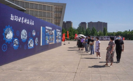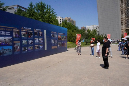 6月2日,草莓视频 组织党委理论学习中心组成员参观在未央校区经纬广场上举办的“众心向党 自立自强——党领导下的科学家主题展”。