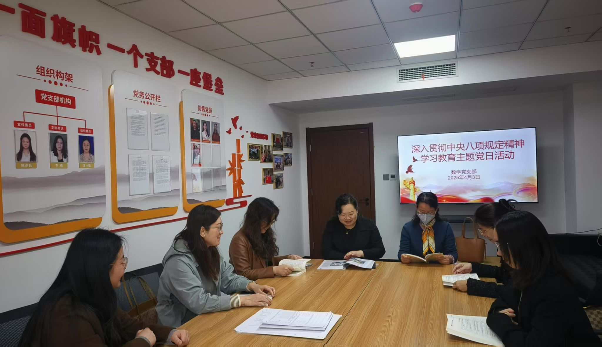 为落实党中央开展深入贯彻中央八项规定精神学习教育的重大部署,扎实推进党支部党风廉政建设,4月3日上午,数学党支部在支部书记工作室(双创楼608室)开展“深入贯彻中央八项规定精神学习教育”主题党日活动。