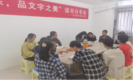 4月16日中午12点,忠诚进取社区在七公寓112室开展了“享读书之乐,品文字之美”七公寓读书分享交流会。