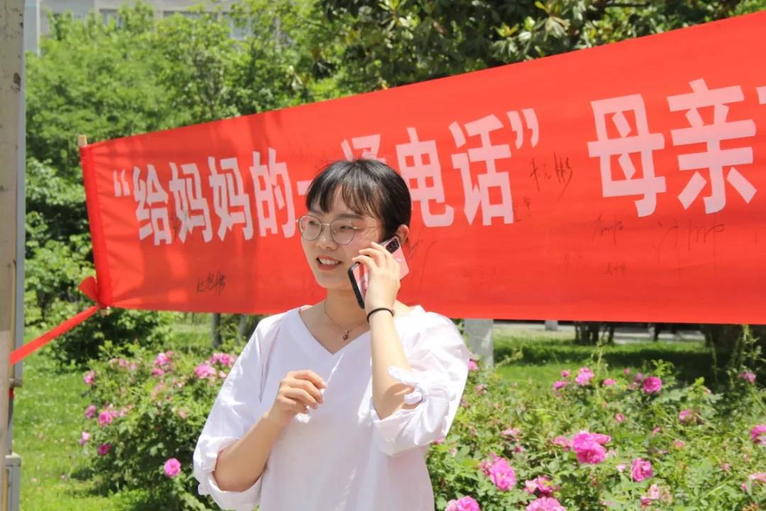同学老师纷纷在条幅上签上自己的名字,为母亲节特别活动留念。母亲节只是五月的一天,而对母亲的爱却是岁岁年年,我们只是借着一个可以表达的日子,说出无数次想道出却羞于开口的言语罢了,在给妈妈的一通电话活动中,同学们积极参与,现场与母亲连线,各地的方言或许不大能听懂,但是对妈妈的爱却一定能直抵人心,有些聊聊家常,有些直抒胸臆,但无论形式如何,爱意永远统一。听说神不能无处不在,所以创造了妈妈,妈妈这个词,只是叫一叫,就触动心弦,或许他们不善表达,但是我们却无比相信,他们一定爱我们