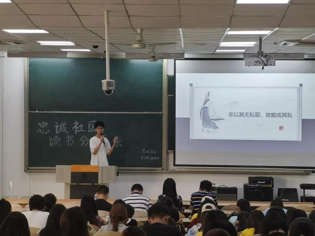 第一个分享的是由王溢航同学,王溢航同学所带来的蒹葭给我们带不古风中别样的感受,让我们领略到古代诗歌的绝佳魅力。易馨玥同学,她给我们带来的《二宫》为大家展示分享了是书中的不一样的一段世事风采。第三个分享的是尹昊同学,他分享的《道德经》,使大家感受到了古籍的哲理素养,让我们体悟到古代文化的博大精深和源远流长。中场环节,由王之杰、刘点和刘鑫超同学为大家带来了歌曲“找自己”。赢得了大家的热烈掌声,他们用歌声浸润了大家的心田。王玥琳同学,为大家演讲分享了《聊斋志异》。她把其中的情节为我们大家展示的美轮美奂,让我们大家浮想联翩。由此足可以看出古代小说的巨大魅力。由任高远同学带来的单口相声“关公战秦琼”。在我国民间有一个广为流传的英雄人物—武圣关羽,关云长!说起关二爷,没人不称赞他的忠义英勇。而任高远同学的分享正是把这种风格展示给了大家。李一帅同学为我们分享的《镜花缘》。给我们展示了他对于古书中情节的理解与感知,让我们认识到了别具一格的古书。最后王思怡同学为我们分享《沧海诗话》,她用唯美的文字将自己的分享刻画的淋漓尽致。使我们的心灵得到了极大地震撼。最后王思怡同学为我们分享《沧海诗话》,她用唯美的文字将自己的分享刻画的淋漓尽致。使我们的心灵得到了极大地震撼。