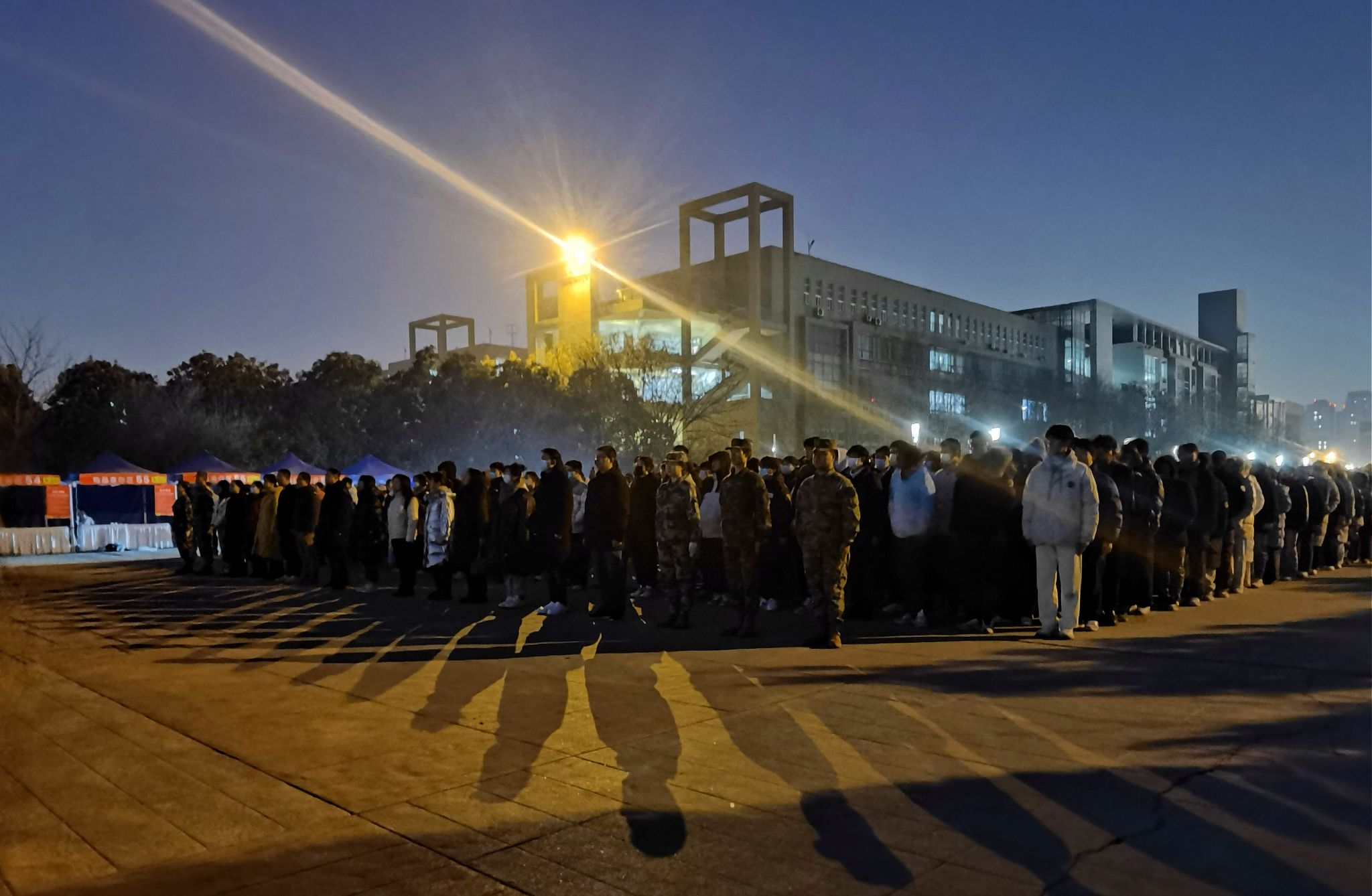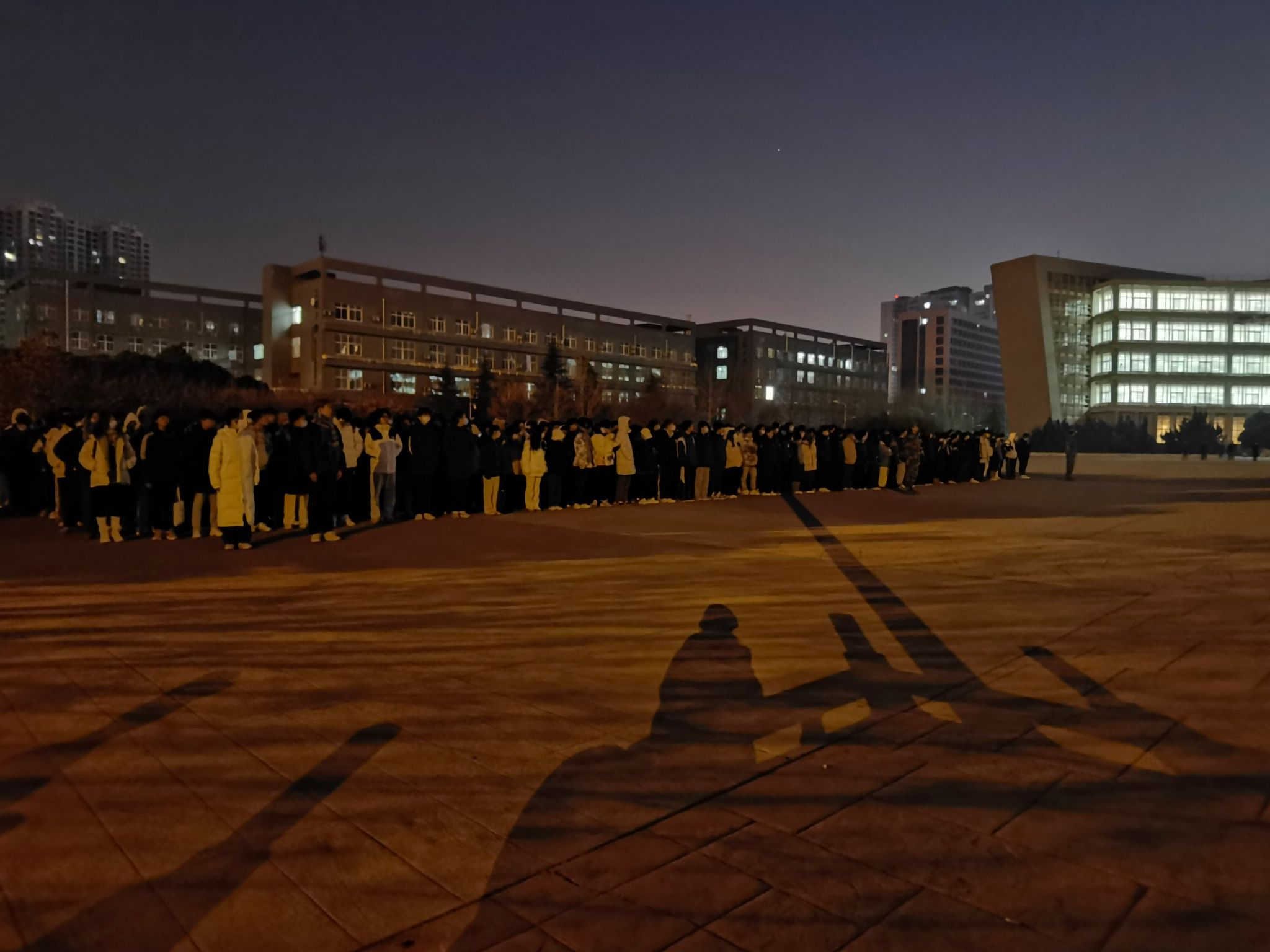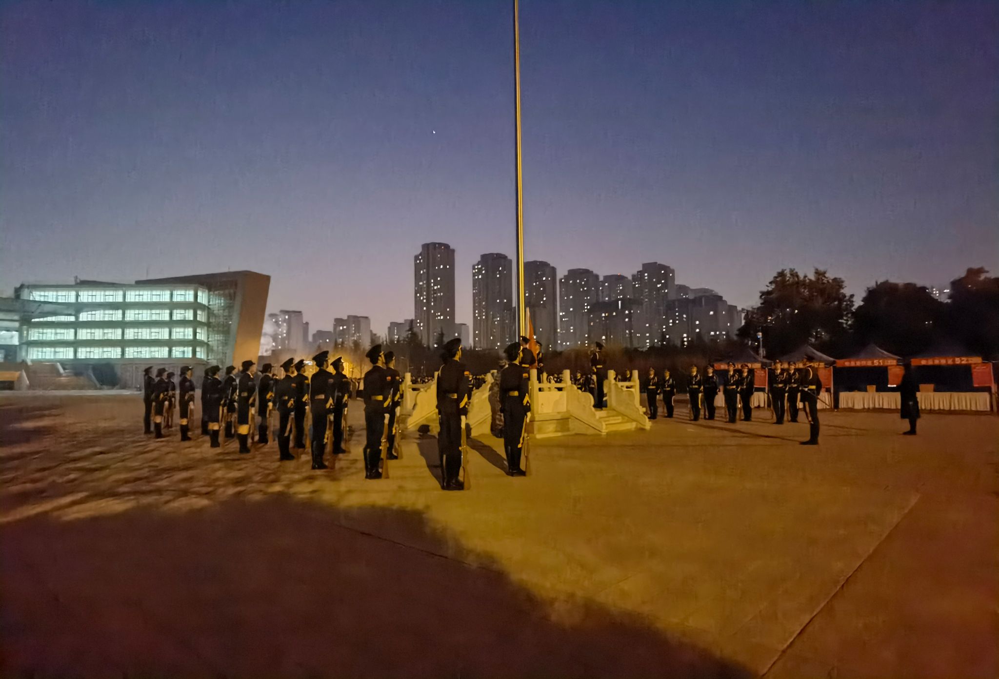 迎着冬日的晨曦,国旗护卫队身姿挺拔,迈着铿锵有力的步伐护送国旗进场。伴随着庄严的《中华人民共和国国歌》,五星红旗冉冉升起,全体师生肃然而立,面向国旗行注目礼,内心充满对祖国真挚热爱和崇高敬意。