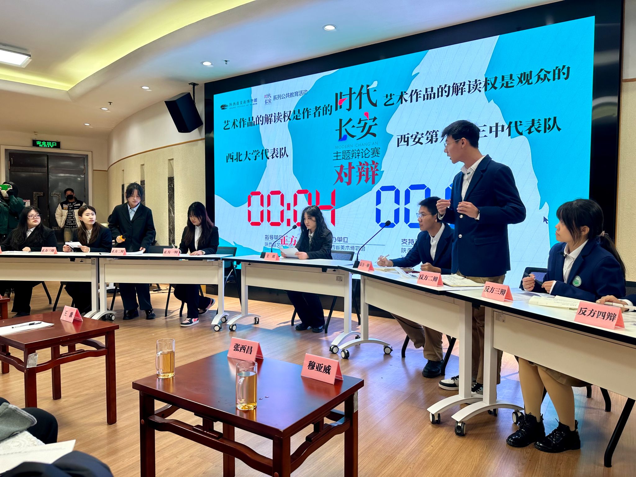 学生通过认真观展与参与体验,深刻领会画家笔触和时代背景对人物精神风貌的塑造,领略陕西当代中国人物画的风采与魅力。随后,进入学术报告厅观看“AI绘画是不是艺术”、“艺术作品的解读权是作者还是观众的”两场艺术类主题辩论赛,并与现场学者、艺术家互动。