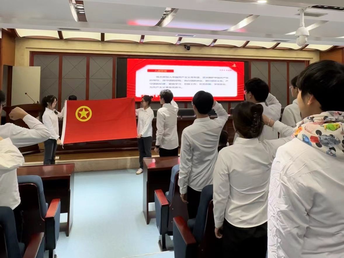 现场举行了为新团员佩戴团徽与入团宣誓仪式。新团员代表李雨龙发言,表示作为新团员要以团员的标准严格要求自己,努力学习,积极进取,主动接受团组织的教育,把握时代机遇,勇担青年使命的坚定信念。