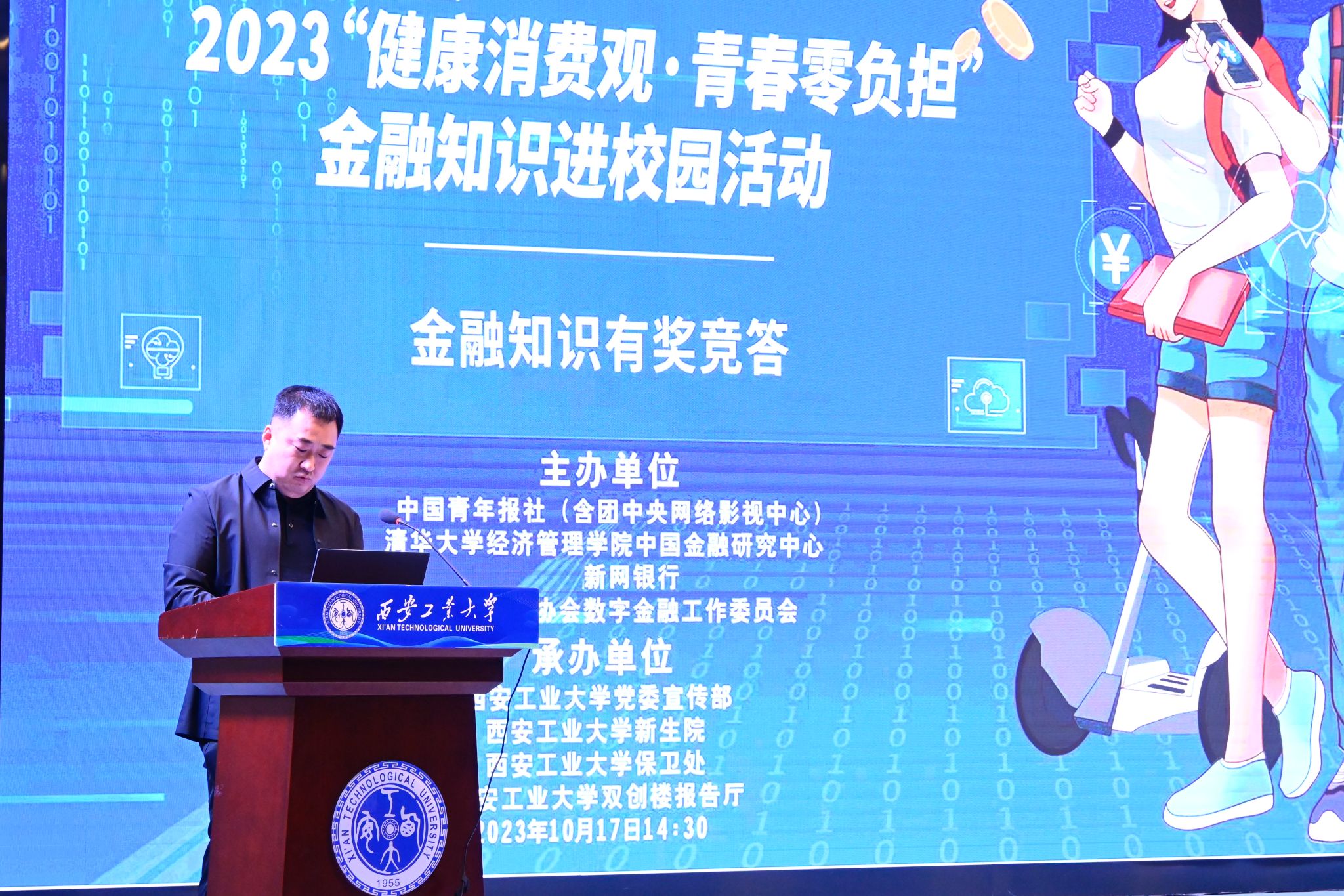 10月17日,由中国青年报社、清华大学经济管理草莓视频 中国金融研究中心、新网银行和中国互联网协会数字金融工作委员会主办,草莓视频 党委宣传部、草莓视频 、保卫处共同承办的“健康消费观 青春零负担”金融知识进校园活动在双创楼报告厅举行。新网银行反欺诈技术主管李辉和西安市公安局未央分局刑侦大队副大队长王开拓两位专家与西工学子分享了有关金融知识和防范电信诈骗的相关内容。