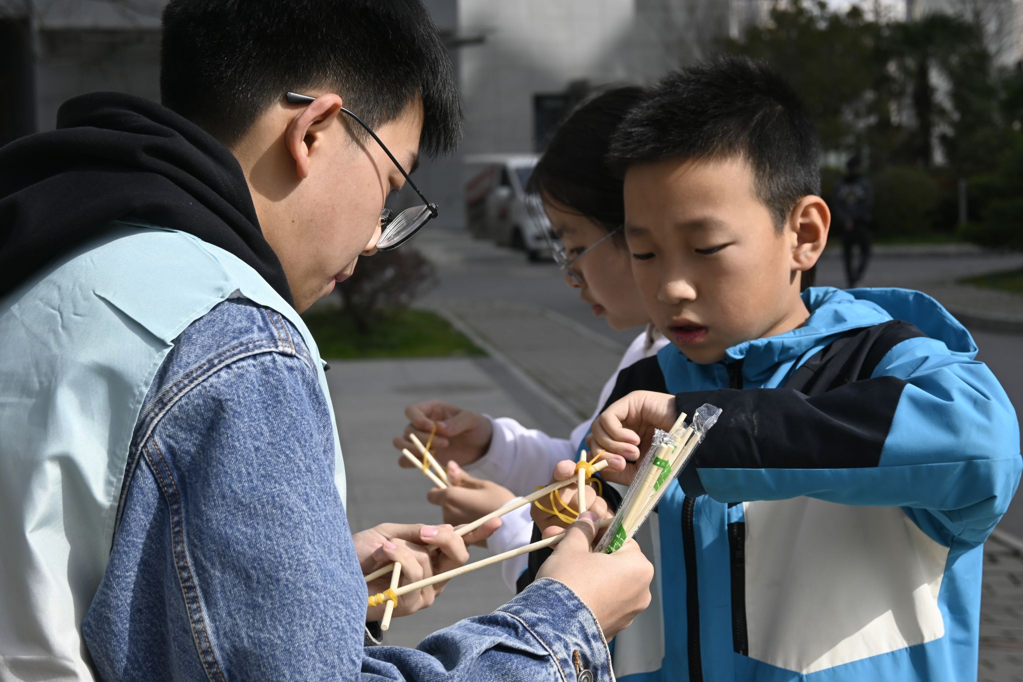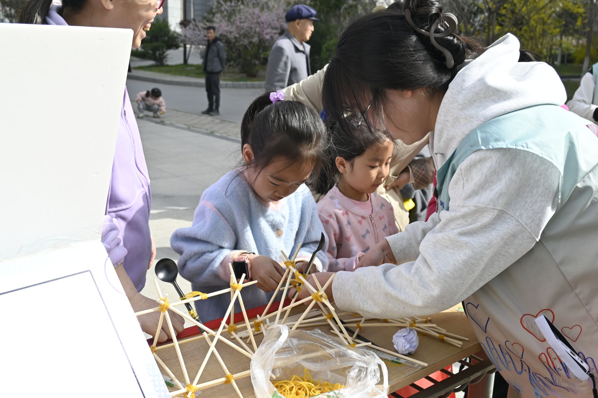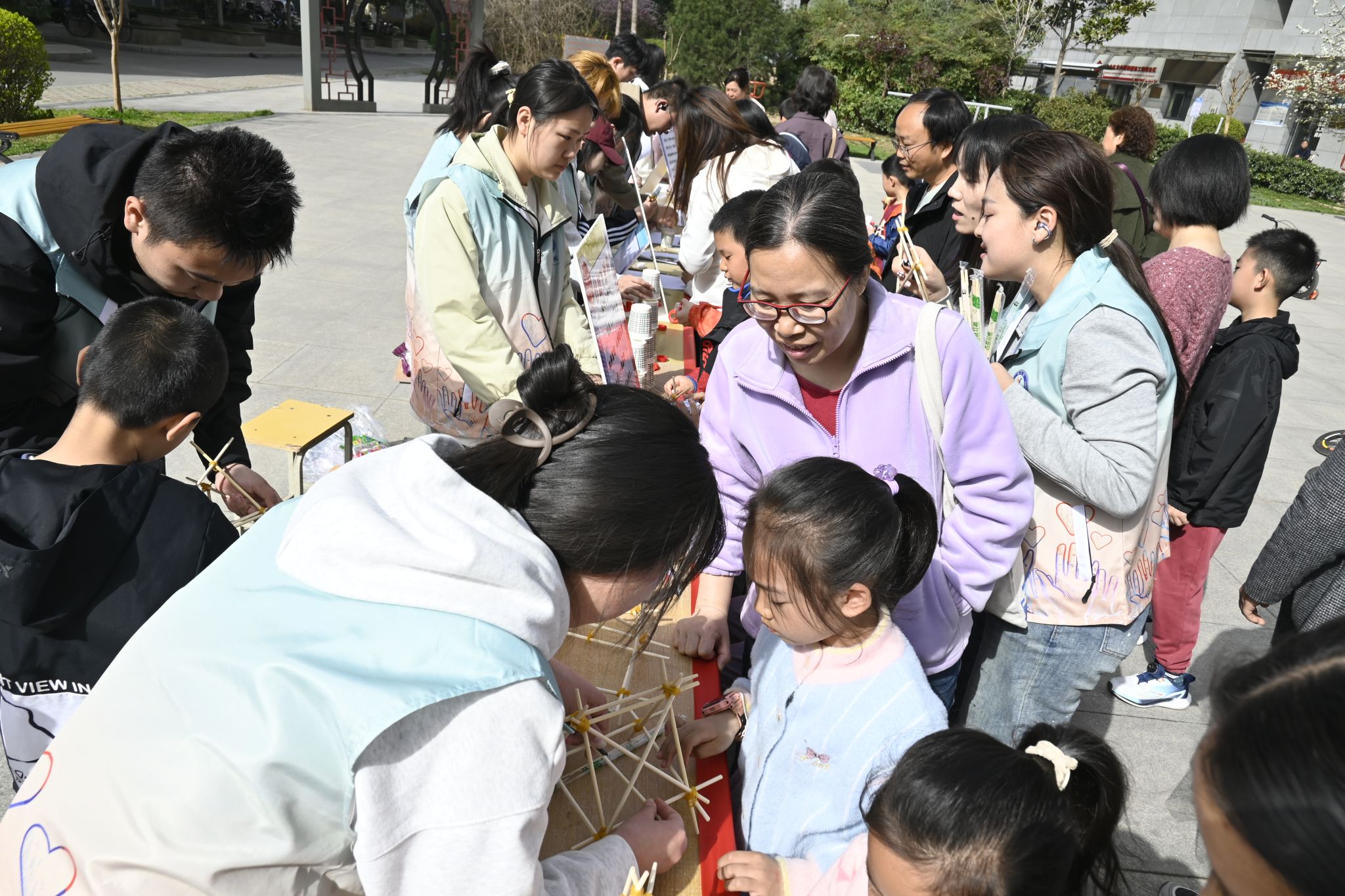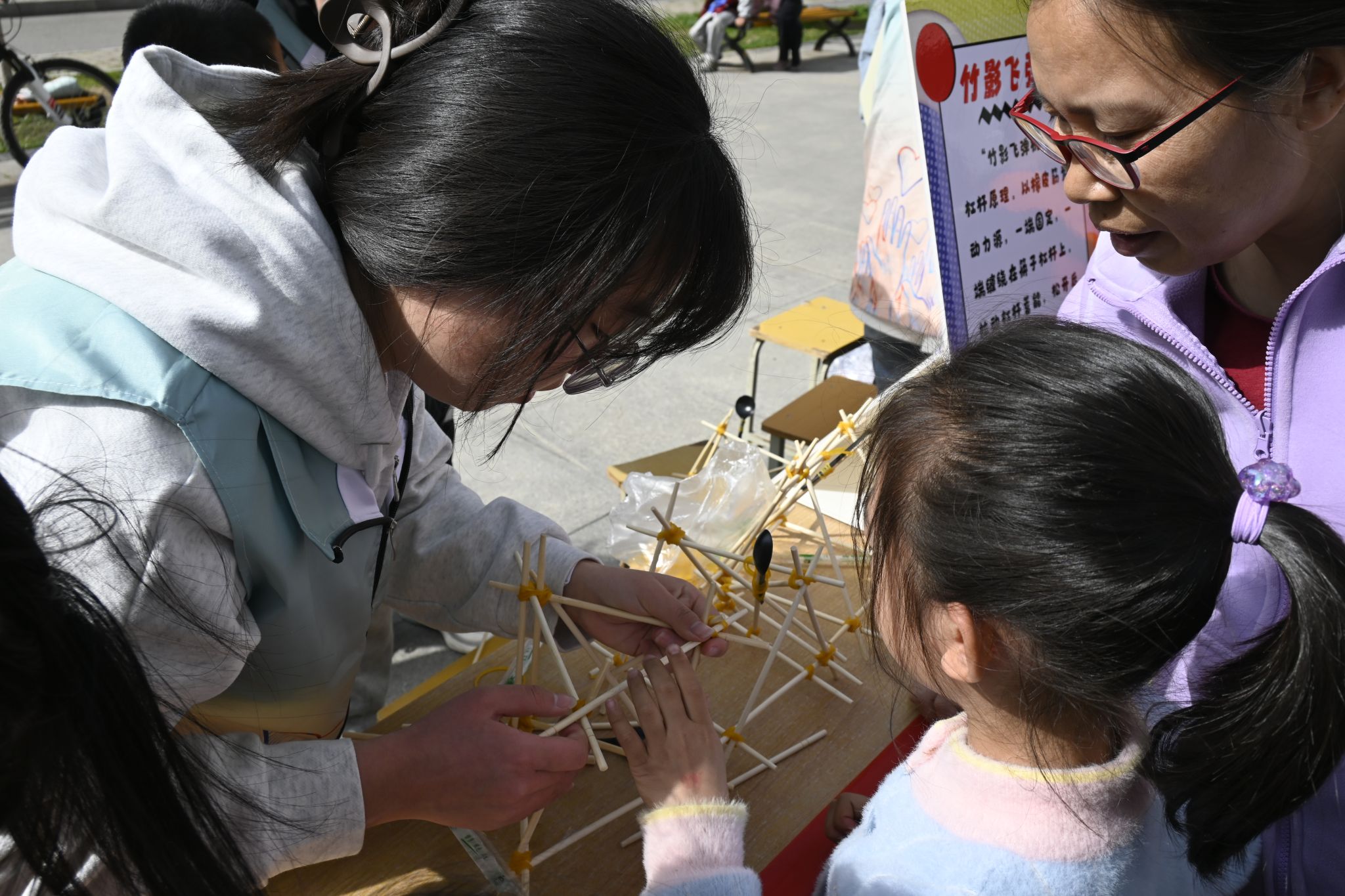 活动中的趣味科普项目吸引了众多孩子和家长参与。在“竹影飞弹机”环节,孩子们动手制作简易飞弹机,学习抛物线运动、力与加速度等物理知识,体验动手乐趣。一位小朋友兴奋地说:“我做的飞弹机飞得可远了!”