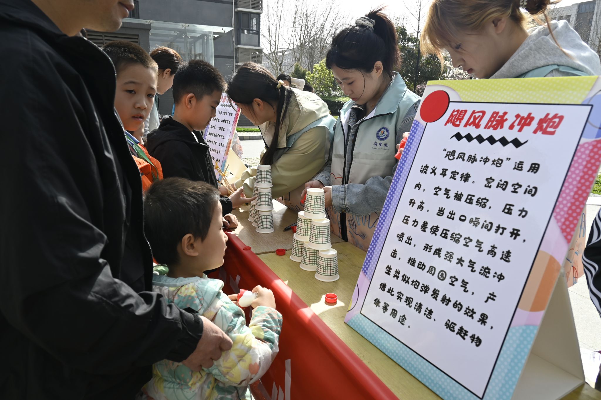 “飓风脉冲炮”环节将活动推向高潮。孩子们通过操作脉冲炮装置,观察空气流动产生的推力,直观感受空气动力学的神奇力量。志愿者们用通俗语言解释原理,让孩子们在玩中学、学中悟。