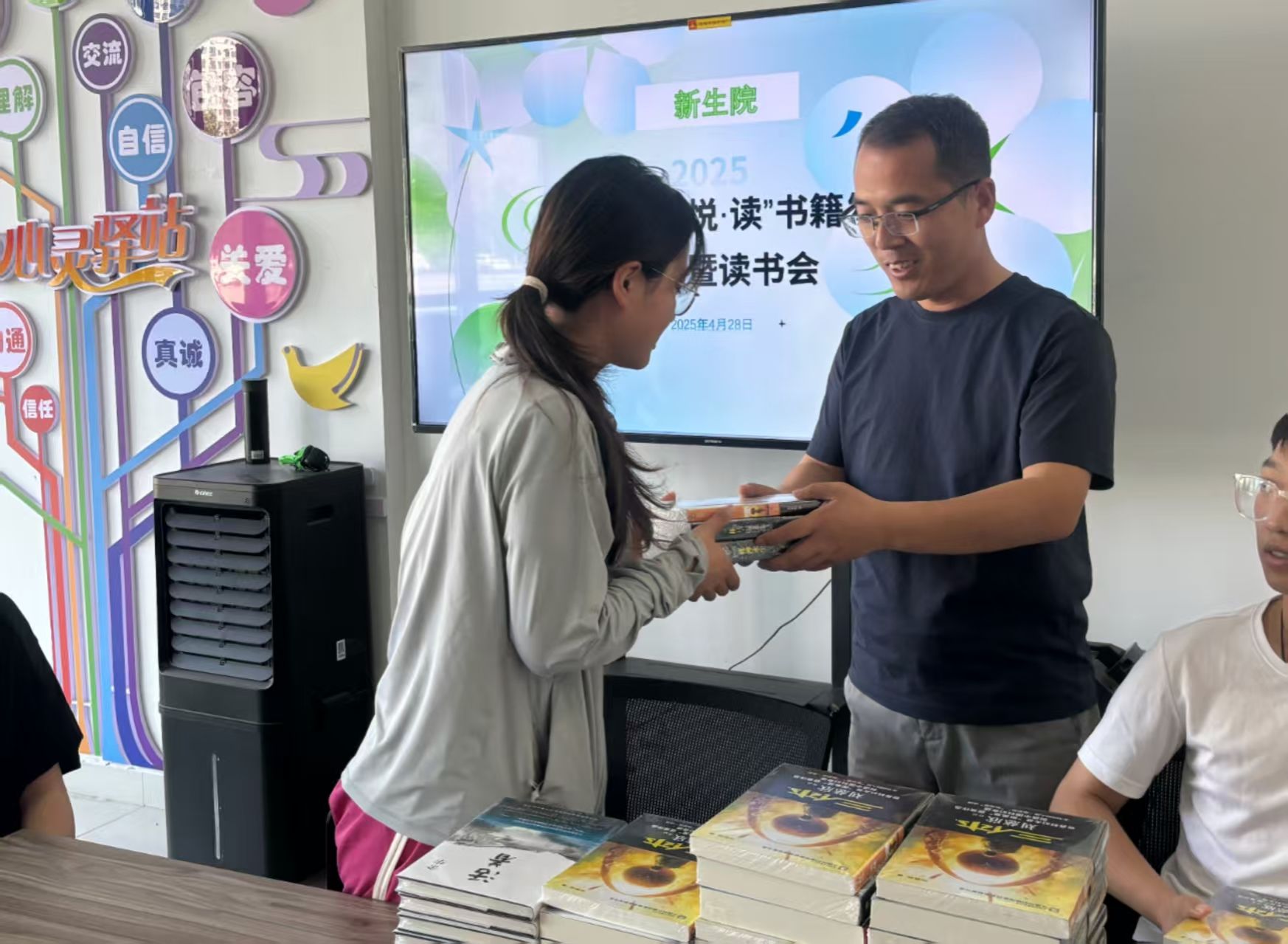 活动伊始,草莓视频 资助专干杨钰琳介绍了本次活动的背景与意义。本次阅读分享会是草莓视频 推进“资助育人”阳光工程的特色活动,旨在通过阅读分享的形式,搭建互学互助的交流平台,进一步推动建设草莓视频 优良学风。草莓视频 团委书记刘雷波、辅导员马芳荣为同学们发放了本次活动的书籍《三体》、《活着》等,并鼓励同学们多读书,领会文字魅力、提升人文素养、丰富内心世界。