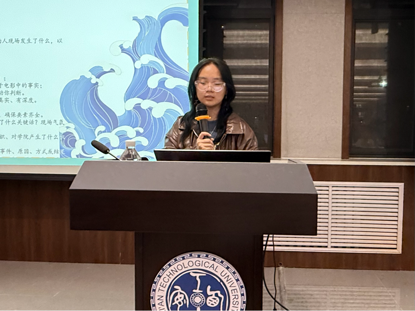 随后,新媒体中心三位优秀学生骨干带来干货满满的经验分享:文案部负责人王佐匀围绕“活动发布稿与新闻稿的实操逻辑”展开,系统讲解了不同文稿的撰写目的、核心作用,并通过案例讲述了标题拟定、内容架构、语言风格等实操方法;视频部负责人冯子懿从“技术赋能宣传”的角度,依次分享了设备适配选择、构图美学原则、运镜节奏把控、光线场景处理四大摄影核心技能,帮助学员建立了专业拍摄的基础认知;摄影部负责人李语苏则聚焦“新闻摄影实战”,结合团学工作场景,提炼出“会议拍摄要覆盖‘全景、特写、侧拍、多维度”、“手机拍摄需做到‘稳画面、清画质、准焦点’”的实用技巧,强化了培训的落地性。