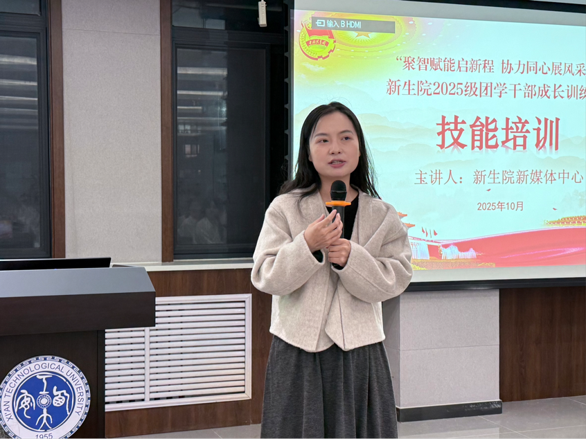培训伊始,院新媒体中心指导老师刘叶以“团学骨干的价值与担当”为主题培训,她从团学工作的系统性出发,聚焦宣传工作的全流程策划与落地执行,为同学们明确了工作抓手和方向。