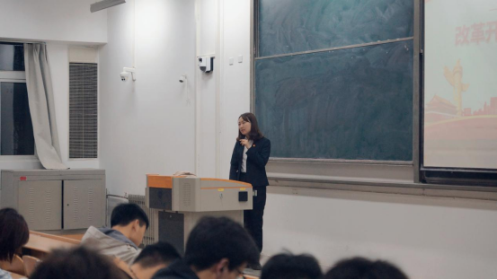 300余名学生齐聚教1-205室,认真聆听了学工部党史宣讲组成员许格宁老师的精彩宣讲。