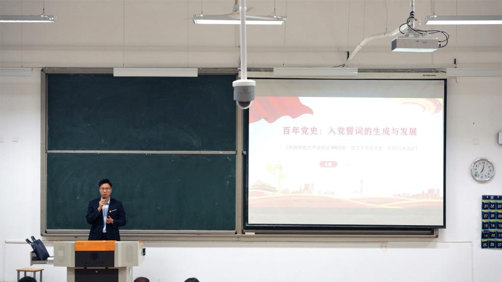 300余名学生在教1-205认真听取了学工部党史宣传组成员李聪老师的精彩报告。