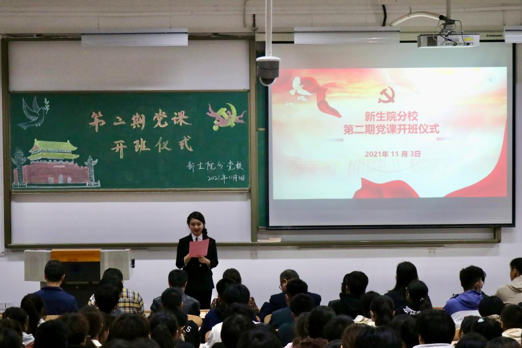仪式在庄严的国歌声中拉开序幕。本期入党积极分子培训班共有来自敦德社区、励学社区、忠诚社区、进取社区共275名学员。2021级材料类专业学生陈得铭同学作为本期培训班学员代表发言,表达了同学们积极向党组织靠拢的决心。