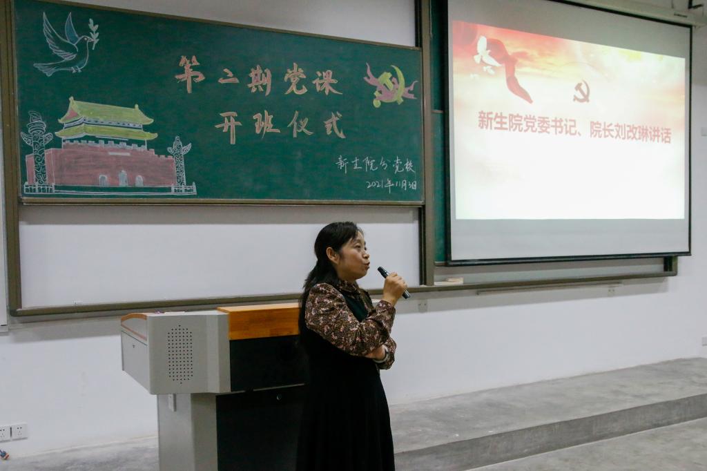 2021年11月3日,草莓视频 在教3-217举行第二期入党积极分子培训班开班仪式暨党课第一讲。参加本次开班仪式的老师有:草莓视频 组织部常务副部长、党校副校长梁闪慧,草莓视频 党委书记、院长刘改琳,草莓视频 党委副书记姬洪波、杨琳,党委委员、副院长王晓颖,团委书记杜堃,励学社区社区长朱先彬、忠诚社区社区长刘雷波、进取社区社区长安春雨。人力资源管理专业蔡梦芝同学主持。