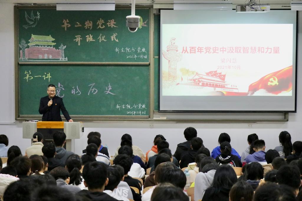 梁闪慧老师以“从百年党史中汲取智慧和力量”为主题,围绕“为什么要学党史?从党史中学什么?对党史的简要回顾、怎样学好党史?从党史中获得重要经验和启示”等五个方面向学员们生动讲述了党的历史。通过四个历史时期、十二个“必须坚持”使同学们真正体会到党的发展历史及其成长过程,坚定了同学们积极向党靠拢并早日加入中国共产党的决心。