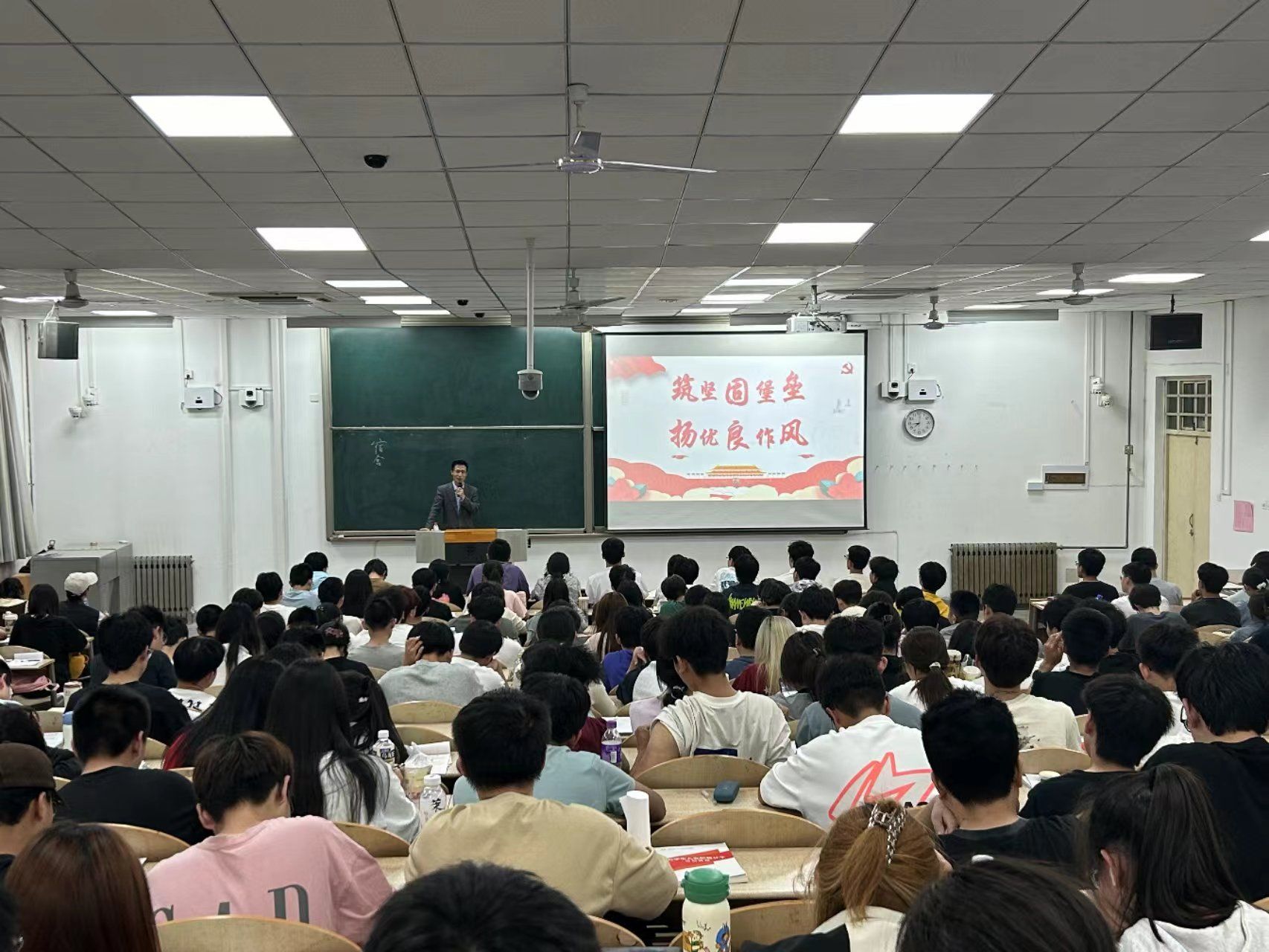 姬洪波以“筑坚固堡垒 扬优良作风”为题,从大学生日常生活引入,深入浅出地为学员们介绍了党的组织机构、“六大纪律”“三大优良作风”主要内容及其特点等。他强调,党的组织建设、纪律建设和作风建设是新时代党的建设的重要方面,是推进党的自我革命不断深化、全面从严治党不断深入的重要举措。他要求,各位学员要在深入学习党史的基础上进一步领会党的纪律和优良作风发展历程和内涵,从现在起严格要求自己,牢固树立纪律意识和规矩意识、继承和发扬党的优良作风、涵养高尚的道德品格,坚定理想信念、提升自身素养,用实际行动向党组织靠拢,在未来的日子里奋楫扬帆,赓续前行!