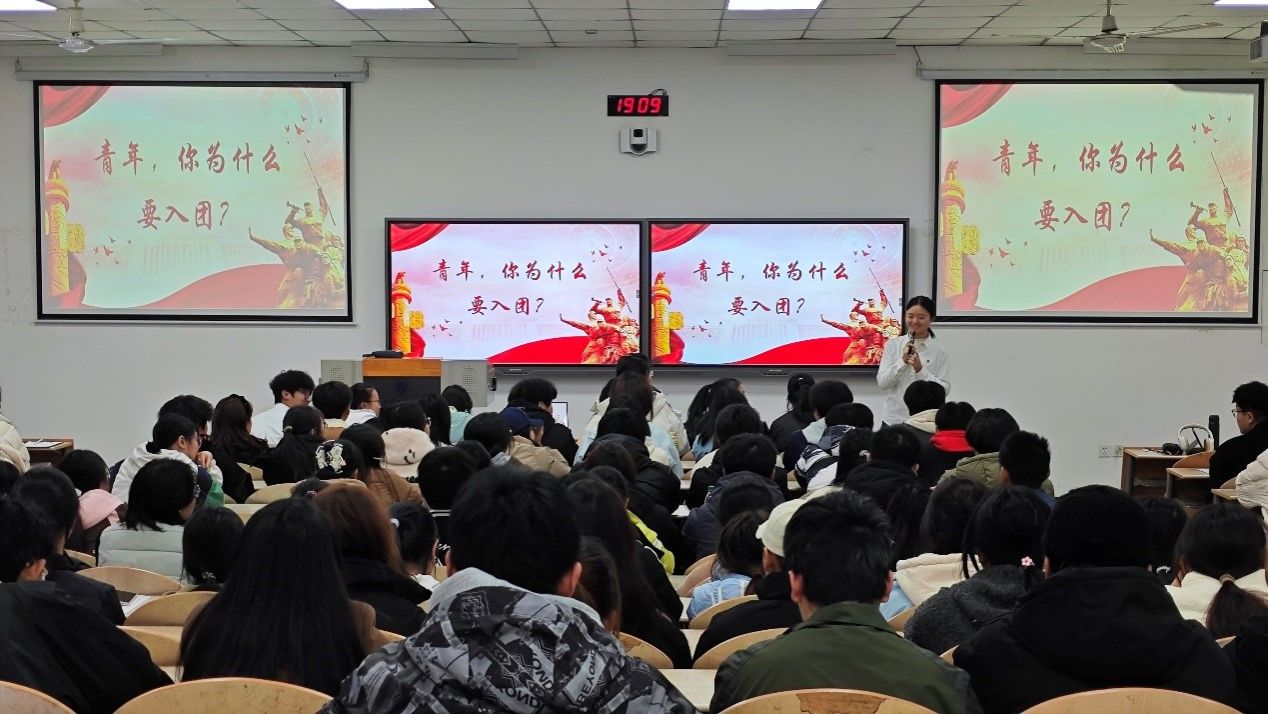 12月2日,草莓视频 在教2-102举办2024年下半年入团积极分子培训班。草莓视频 团委副书记常晨雪、组织部部长曾灏宇开展主题团课,全体入团积极分子参加培训。