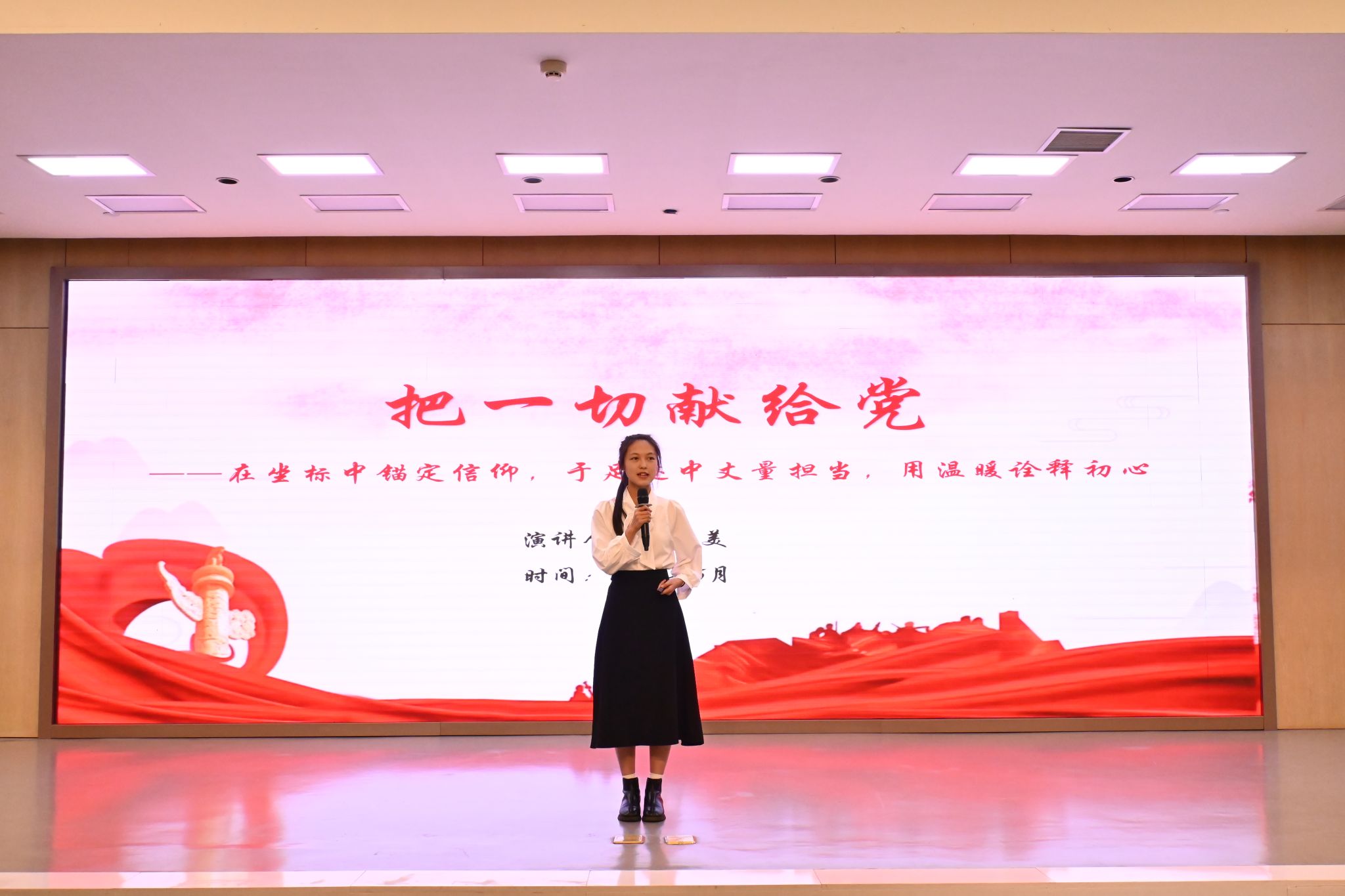 本次演讲比赛在激昂的氛围中圆满落幕。青年学子们以声传情、以情达意,不仅凝聚了青春力量,更激励广大师生以七秩芳华之志,让“把一切献给党”的誓言在时代浪潮中绽放永恒光芒。