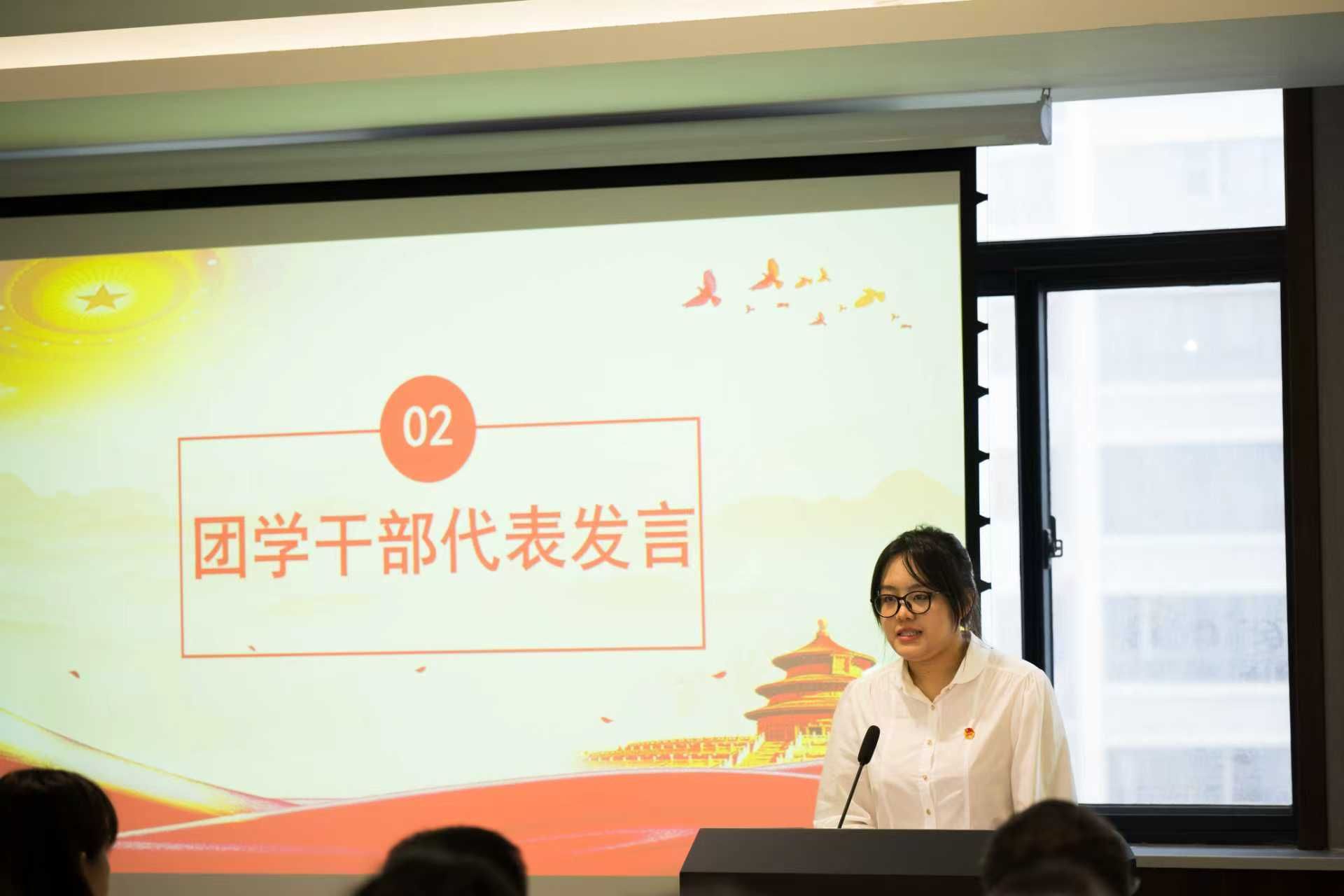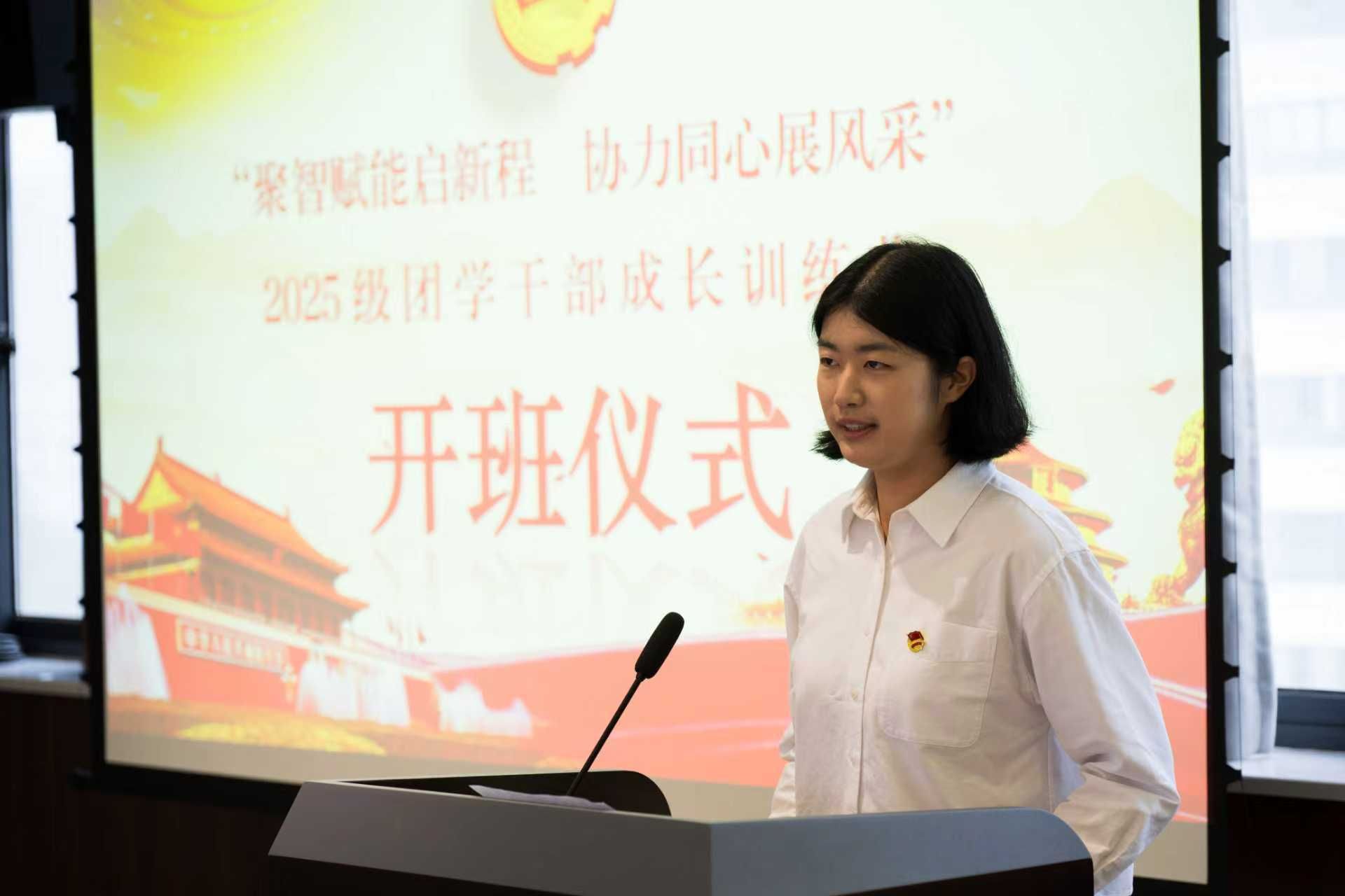 学员代表王海雯发言,全体学员将珍惜学习机会,以归零心态夯实理论,勤学善思,团结进取,务实担当,恪守纪律,努力成长为一名合格的学生干部。