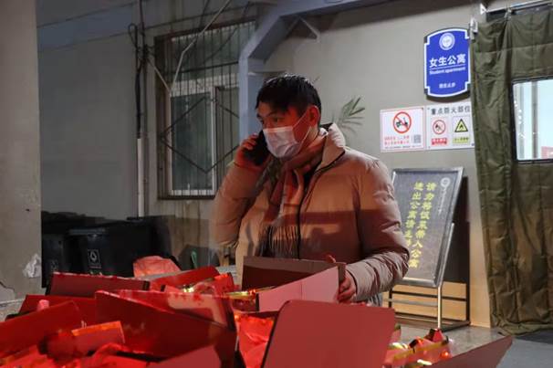 自2020年初疫情爆发以来,朱先彬已经整整两年没能见到父母了。原本他算2021年暑假回老家看望父母,然而看到全运会开幕式学生群演带队教师的招募通知,他第一时间主动报名,回家计划就因此又被暂时搁置。父亲身体不好,母亲一人在家照顾,朱先彬心里很是放不下,时长牵挂着。2021年12月底,临近期末,学生工作已进入收尾阶段,草莓视频 领导实在看不过朱先彬 “拼命三郎”的架势,“命令”他寒假回老家探望父母。谁料疫情来势汹汹,已经买好回家车票的他又主动请缨,奔赴学校疫情防控一线,再次选择了与学生在一起——进入封闭管理校园与学生同吃同住,共度时艰。