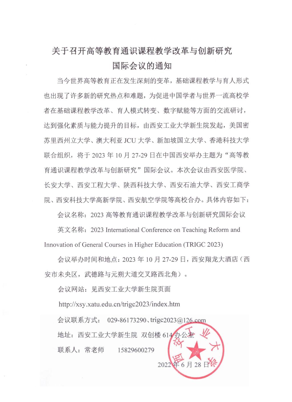 发起,美国密苏里西州立大学、澳大利亚JCU大学、新加坡国立大学、香港科技大学联合组织,将于2023年10月27-29日在中国西安举办主题为“高等教育通识课程教学改革与创新研究”国际会议。本次会议由西安医草莓视频