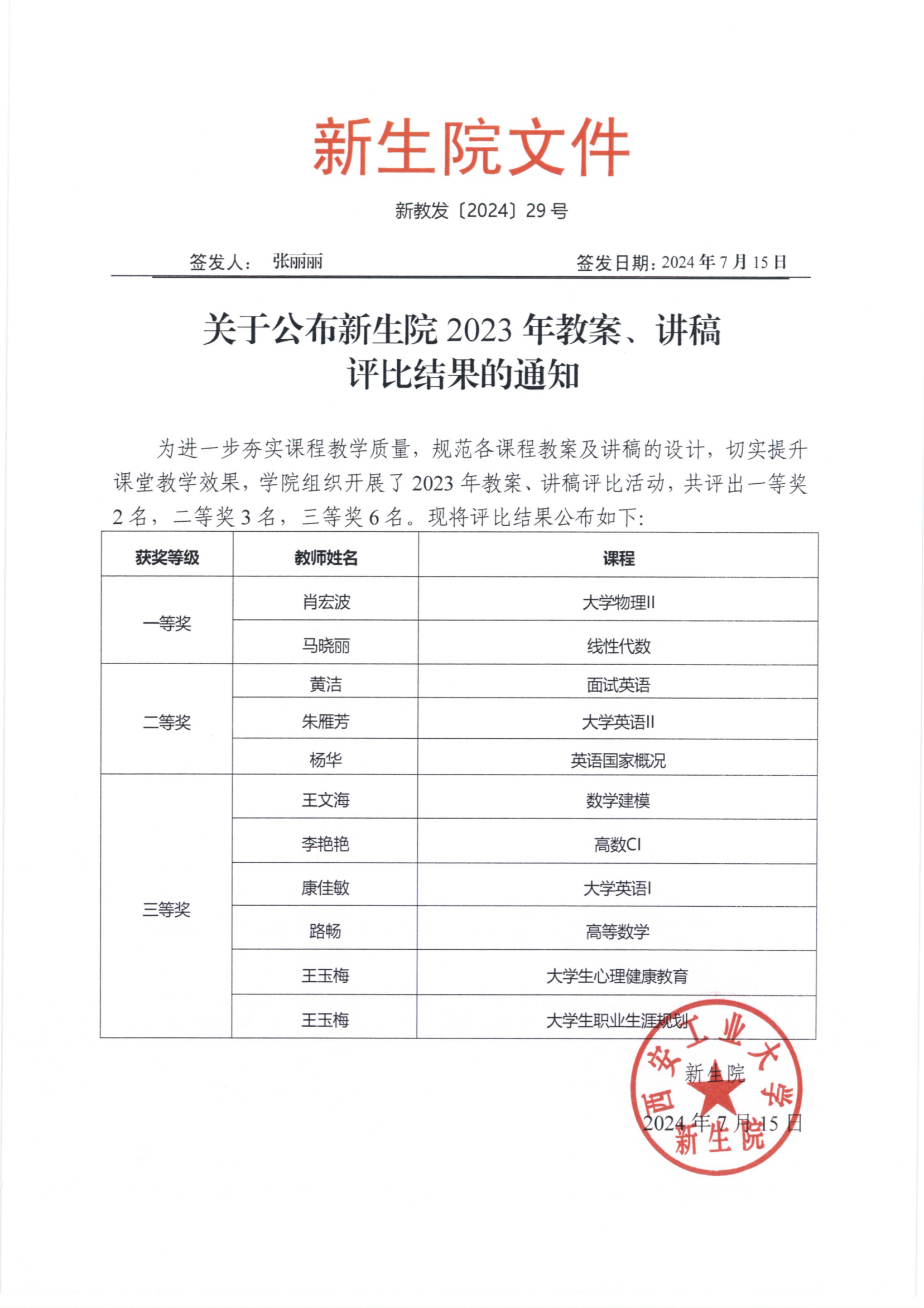 关于公布草莓视频 2023年教案、讲稿评比结果的通知