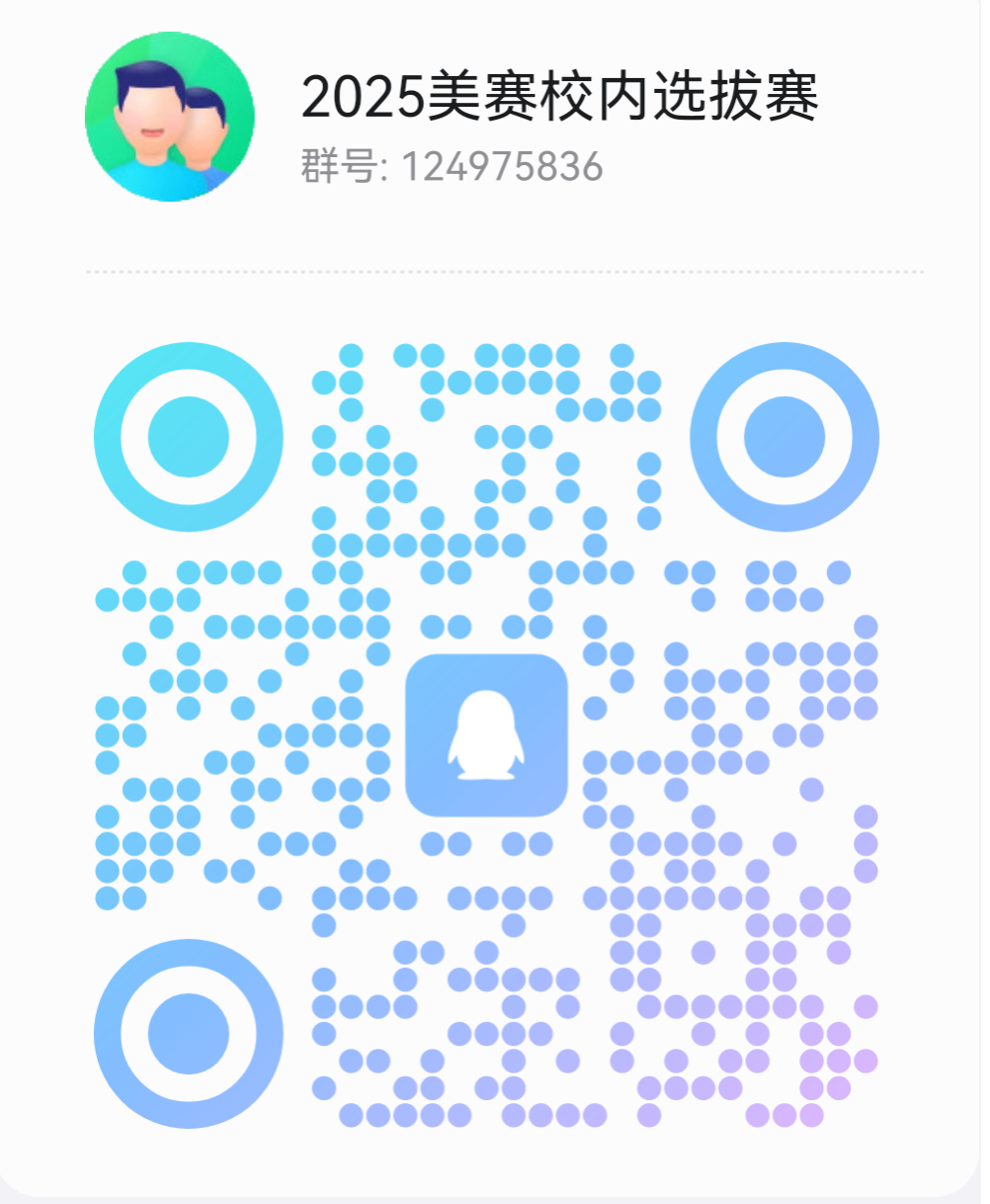 微信扫描下方二维码报名,并实名加入“2025美赛校内选拔赛” QQ群。