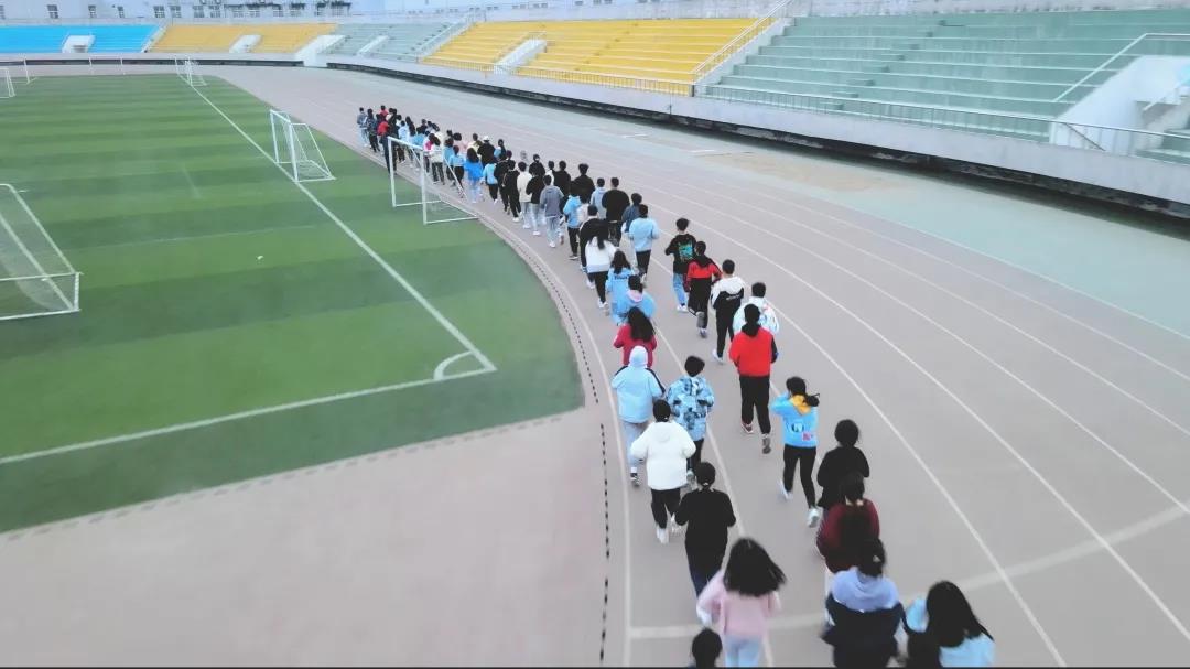 百人慢跑:沐浴朝阳,踏在跑道上,用年轻的活力,迎接第一抹晨曦。