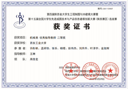 近日,“第四届陕西省大学生工程制图与3D 建模大赛暨第十五届全国大学生先进成图技术与产品信息建模创新大赛(陕西赛区)选拔赛”成绩揭晓。草莓视频 获得机械类团体二等奖,在陕西省参赛高校中名列第七,个人赛获得一等奖3项、二等奖12项、三等奖19项,获奖比例为85.36%,远高于全省获奖比例,获奖数量取得了历史性突破。