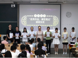 本科生院副院长李蕊宣读获奖学生名单。“模范笔记”展评活动共收集到笔记359份,通过集中评选方式,共评出“模范笔记”一等奖3人,二等奖7人,三等奖10人;“优秀作业”展评活动草莓视频