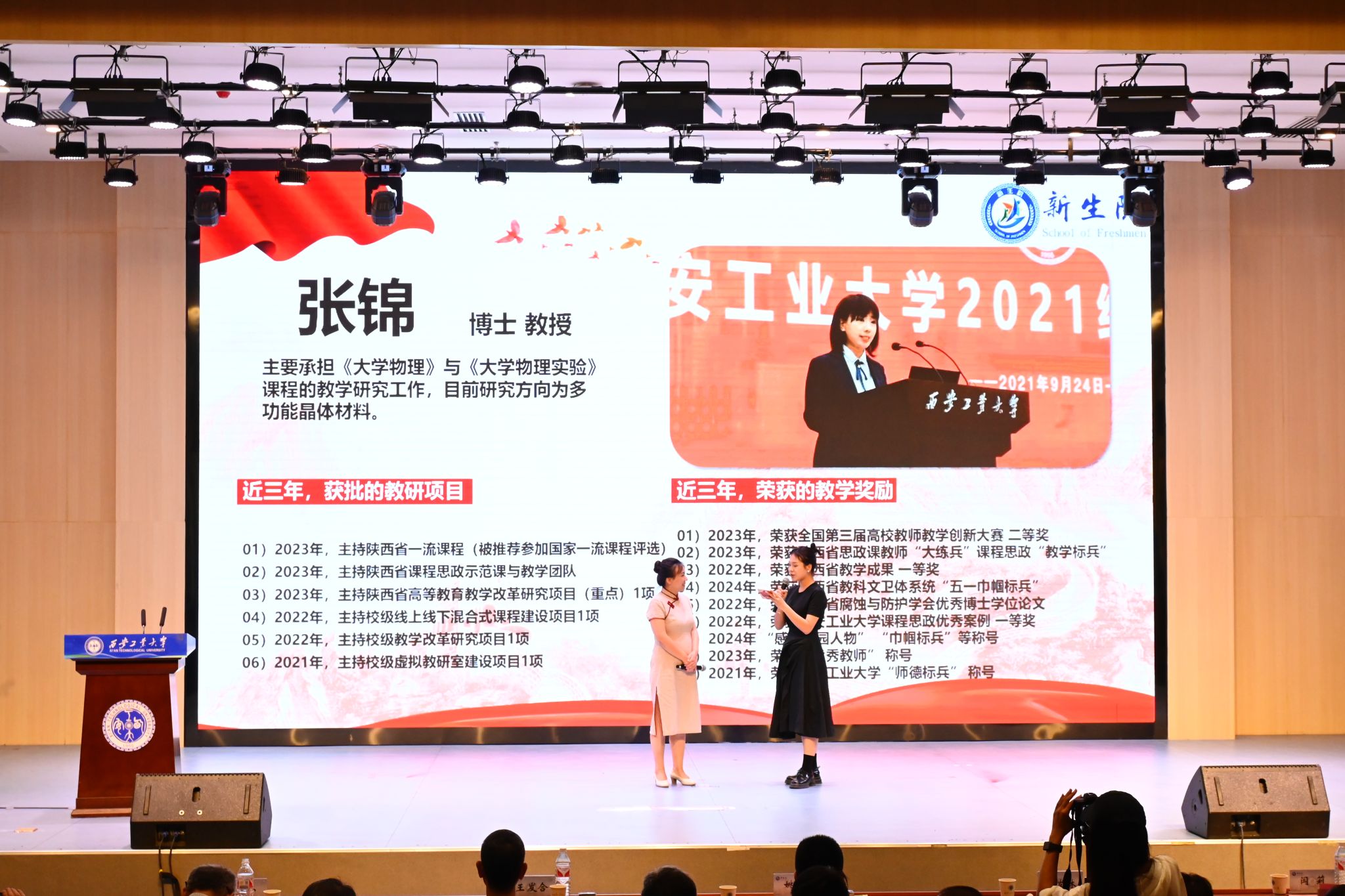 在“把一切献给党” 主题展示活动中,优秀教师代表张锦分享了她与学生相处的秘诀,在《大学物理》课程教学中如何融入思政元素,并寄语学生以梦为马、不负韶华。学生代表叶嘉怡等以舞台剧的形式演绎了社区精品“早鸟晨读”活动,实景展现大一学年的优良学风养成。郭佳睿同学的《青春强国,有我》演讲及合唱《有我》展现出青年学子在新时代、新征程中报效伟大祖国的责任之心和行动之力。