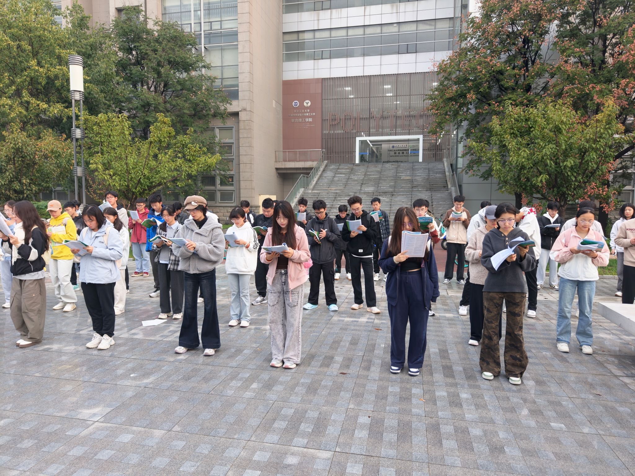 活动现场,琅琅读书声穿梭于校园的各个角落,成为清晨最动人的旋律。同学们手捧书籍,或专注背诵英语单词,或轻声品读经典语句,或逐字研读原文片段,神情投入、态度认真,以饱满的热情展现出新生群体昂扬向上的蓬勃朝气与积极进取的学习风貌。此次“早鸟计划”晨读活动,不仅有效点燃了同学们的学习热情,进一步提升了学习积极性,更在校园内营造出互助共进、勤学笃实的良好学习氛围。